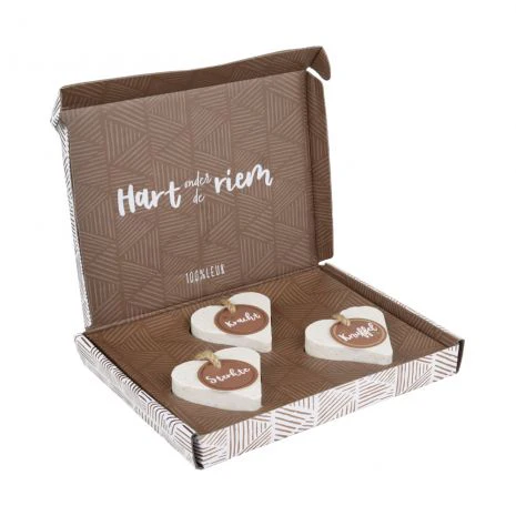Soms wil je iemand laten weten dat je aan hem of haar denkt, vooral in moeilijke tijden. Dit brievenbuspakketje is een klein maar liefdevol gebaar om iemand een hart onder de riem te steken. Het bevat drie hartvormige zepen, elk met een eigen boodschap: Sterkte, Kracht en Knuffel.