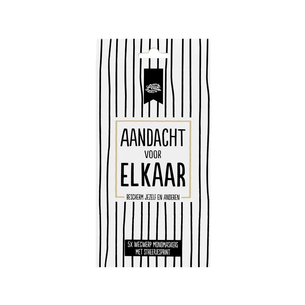 Een niet-medisch mondmasker voorzien van een 100%LEUKe print. In iedere verpakking zitten 5 wegwerp mondmaskers!