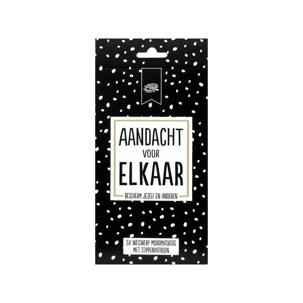 100% Leuk Mondmasker 5 stuks – Zwart met witte stippen