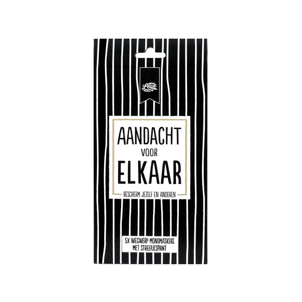 Een niet-medisch mondmasker voorzien van een 100%LEUKe print. In iedere verpakking zitten 5 wegwerp mondmaskers!