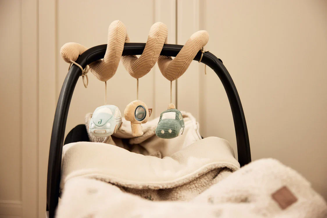 Deze kleurrijke activiteitenspiraal is perfect voor je kleintje en zorgt voor eindeloos speelplezier! Met twee vrolijke autootjes, een handige sleutel, en een combinatie van ribstof in Biscuit, Cloud Blue en Sea Green, is deze spiraal niet alleen leuk om naar te kijken, maar ook om mee te spelen. De spiraal heeft een spiegeltje, een belletje en knispering die de zintuigen van je baby prikkelen. Dankzij de bevestigingslusjes aan beide kanten kun je de spiraal eenvoudig aan de box of de maxi cosi bevestigen. Te leuk!