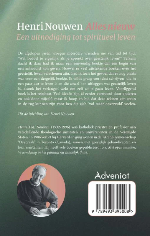 Henri Nouwen legt uit wat spiritueel leven is en wekt bij de lezer het verlangen op om zo te gaan leven. Een eenvoudig, klein boek dat Nouwen schreef als steun in de rug voor hen die zich “vol maar onvervuld” voelen. Opnieuw op de markt gebracht door Adveniat. Henri Nouwen (1932-1996) behoort tot de meest gelezen spirituele schrijvers. Hij is geliefd om de manier waarop hij woorden geeft aan een authentiek geloof.
