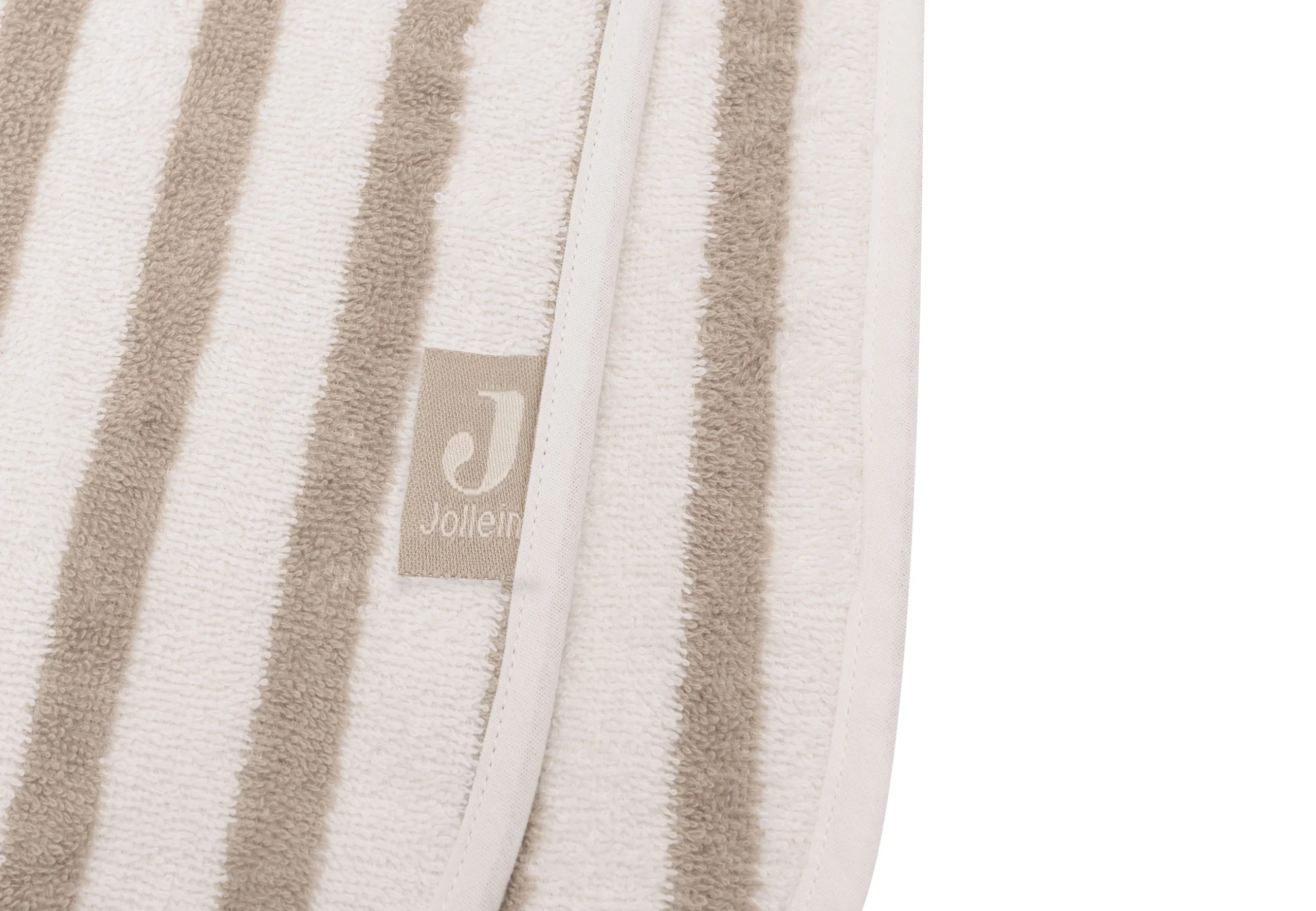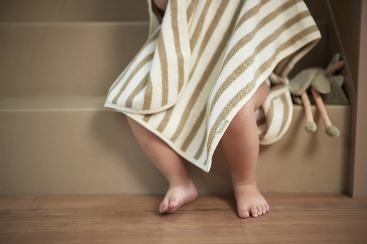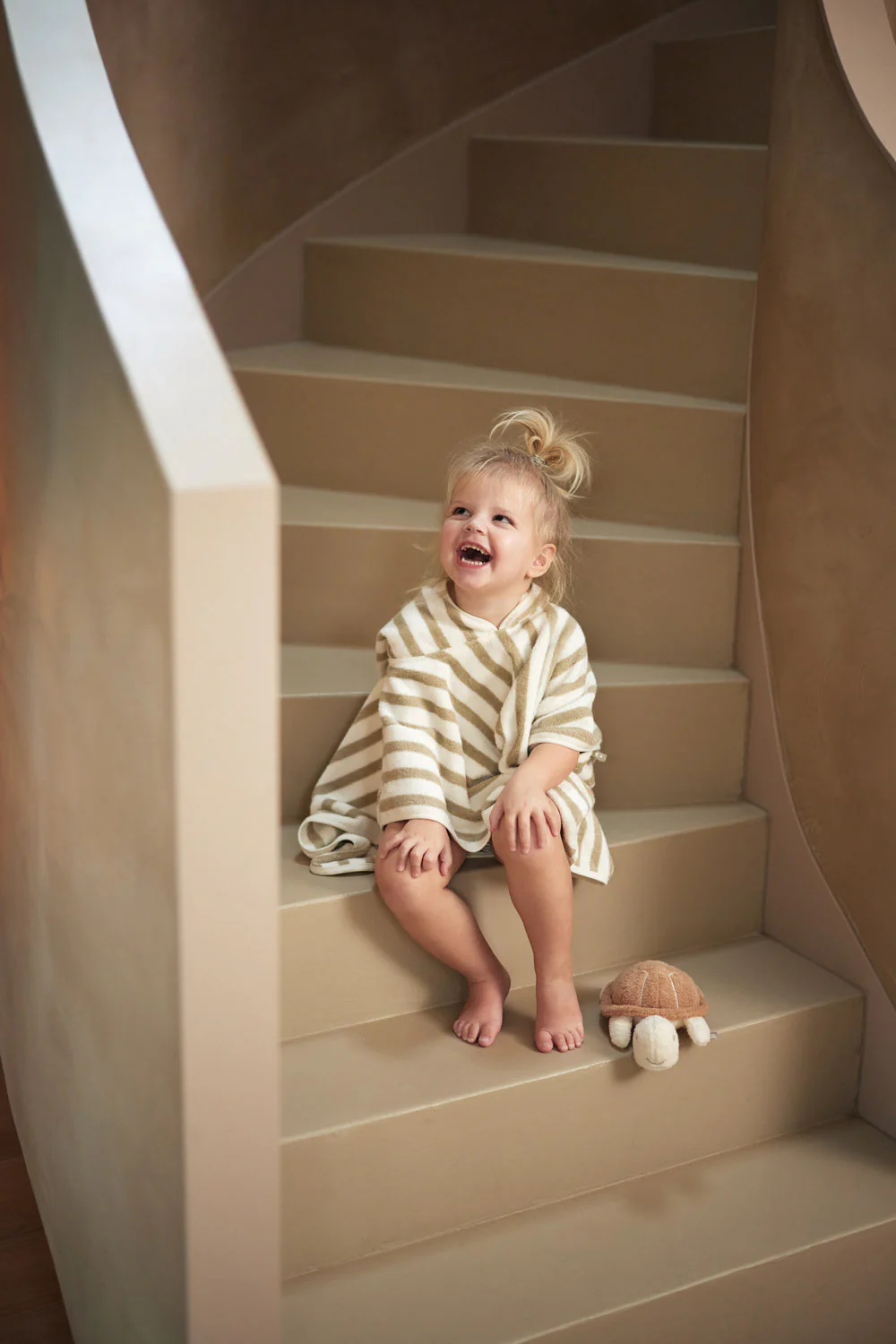 Een badponcho is voor peuters de ideale metgezel na het badderen of zwemmen. De terry stripe badponcho heeft een handige capuchon om de haartjes snel te drogen en je kleintje lekker warm te houden. Gemaakt van zachte badstof en verfraaid met een olijfgroen streepjespatroon. Niet alleen functioneel, maar ook stijlvol. Bovendien, met het GOTS-certificaat, kun je met een gerust hart weten dat deze badponcho aan hoge milieustandaarden voldoet. Dus, wikkel je dreumes/peuter in comfort en stijl na een badsessie of een zwempartij met de GOTS-gecertificeerde badponcho van Jollein. Het perfecte accessoire voor droog en gezellig plezier!