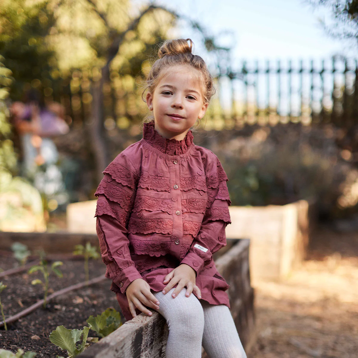 Oh wauw, deze blouse Luen van Baje Studio is echt alles wat je hebben wil deze winter voor je meisje. Prachtige details, zoals een mooi opstaande kraag en kanten ruches en embroderie hartjes.