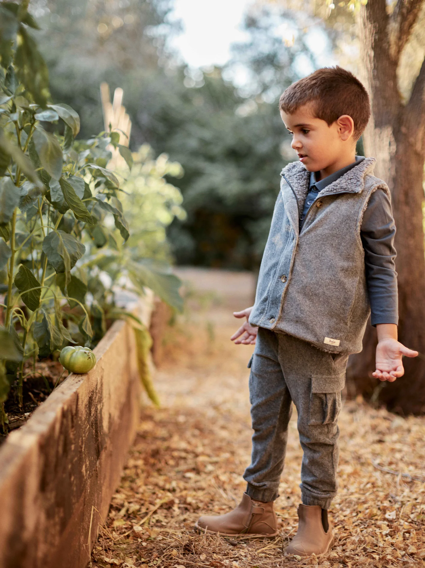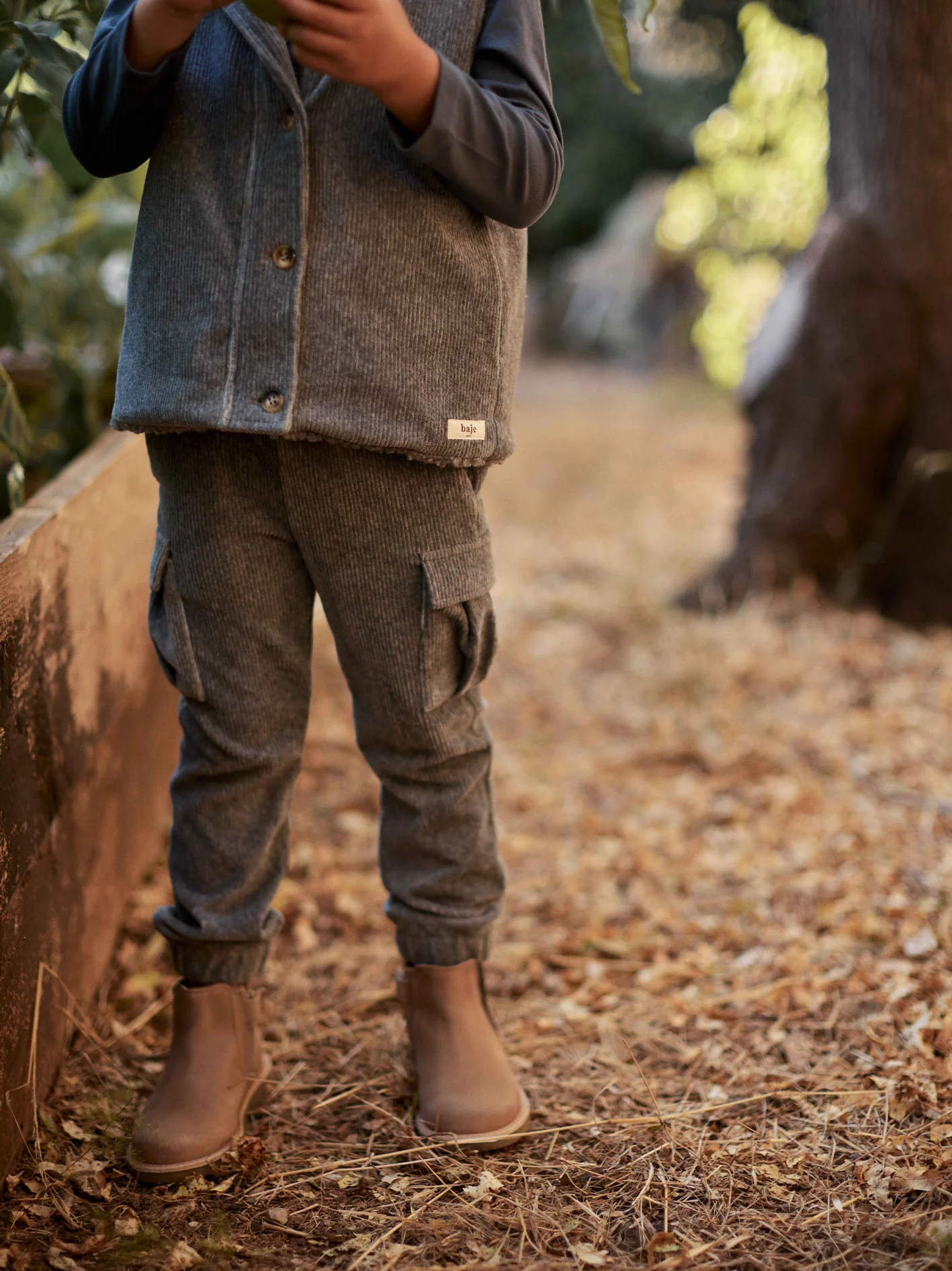 Corduroy cargo broek Wez van Baje Studio is dé perfecte combinatie van comfortabele en stoere stijl. Gemaakt van zachte ribstof voelt de broek warm en flexibel aan, terwijl de cargo zakken zorgen voor een trendy en speelse look. De elastische tailleband en boorden maken dat de broek altijd goed aansluit en heerlijk zit, ideaal voor actieve kinderen. Dankzij de neutrale kleur grijs is deze broek makkelijk te combineren met truien, hoodies en vesten uit de Baje Studio collectie.