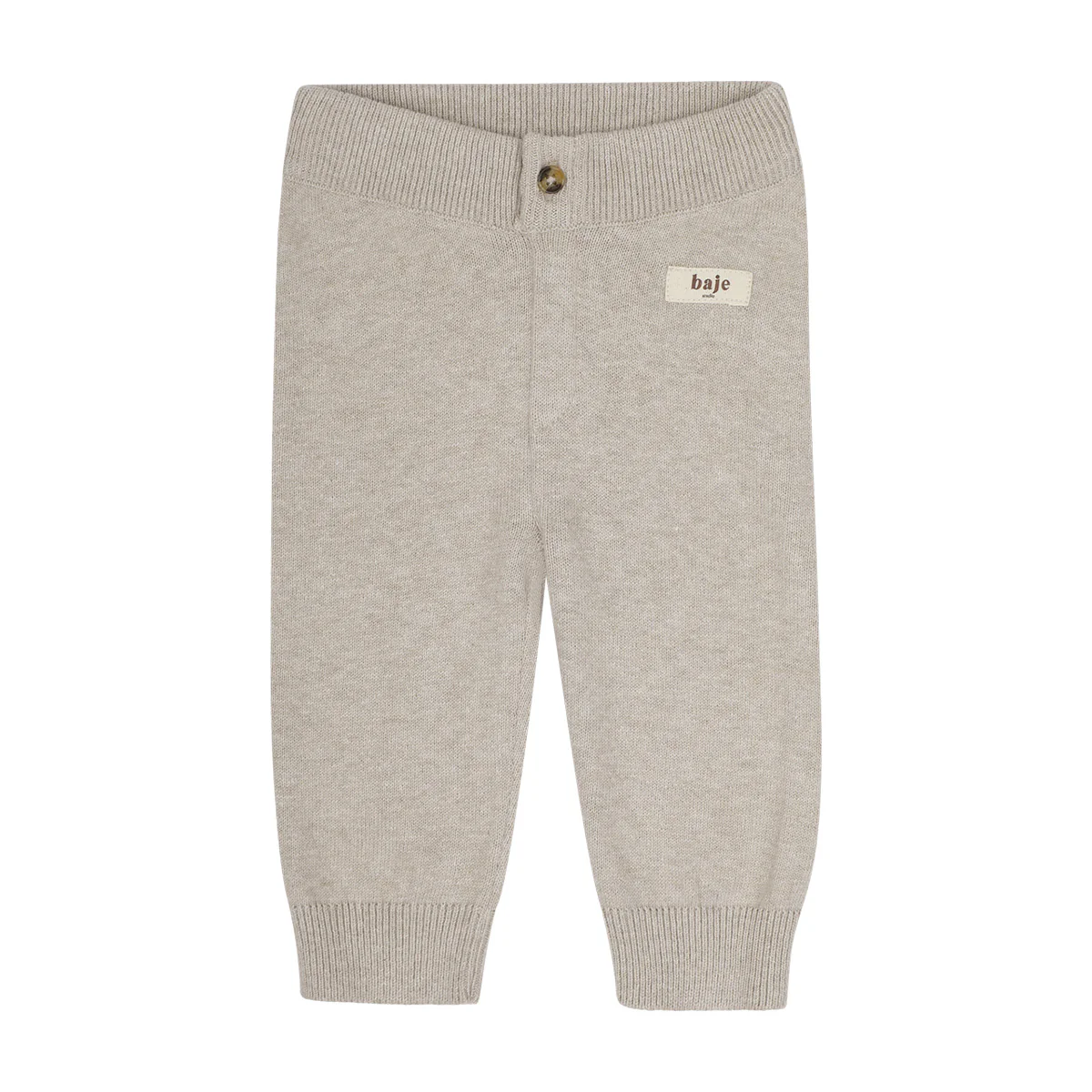Gebreid baby broekje van Baje Studio. Broek Valero heeft een knoopsluiting in de taille en een fake gulp. De gebreide broek heeft een unisex kleur en model. De kleur taupe cafe is een wat koelere taupe tint.