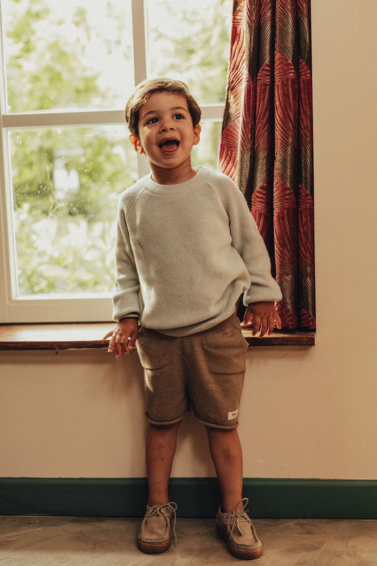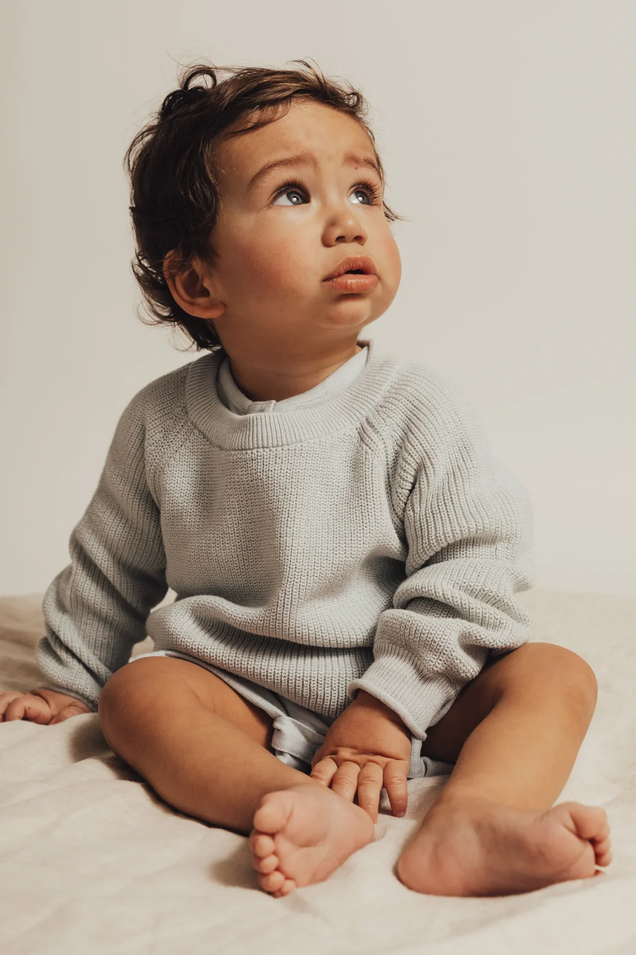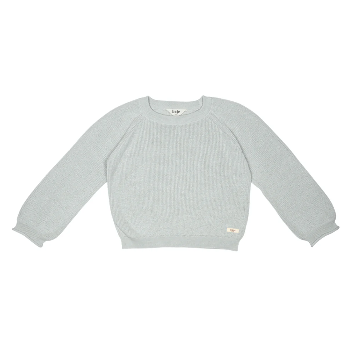 Fijn en dun gebreide trui van katoen. Sweater Bendigo van Baje Studio heeft een prachtige, zachte, lichtblauwe kleur (geen baby blauw), ronde halslijn en lange raglan mouwen. Deze sweater is zowel stijlvol als comfortabel.
