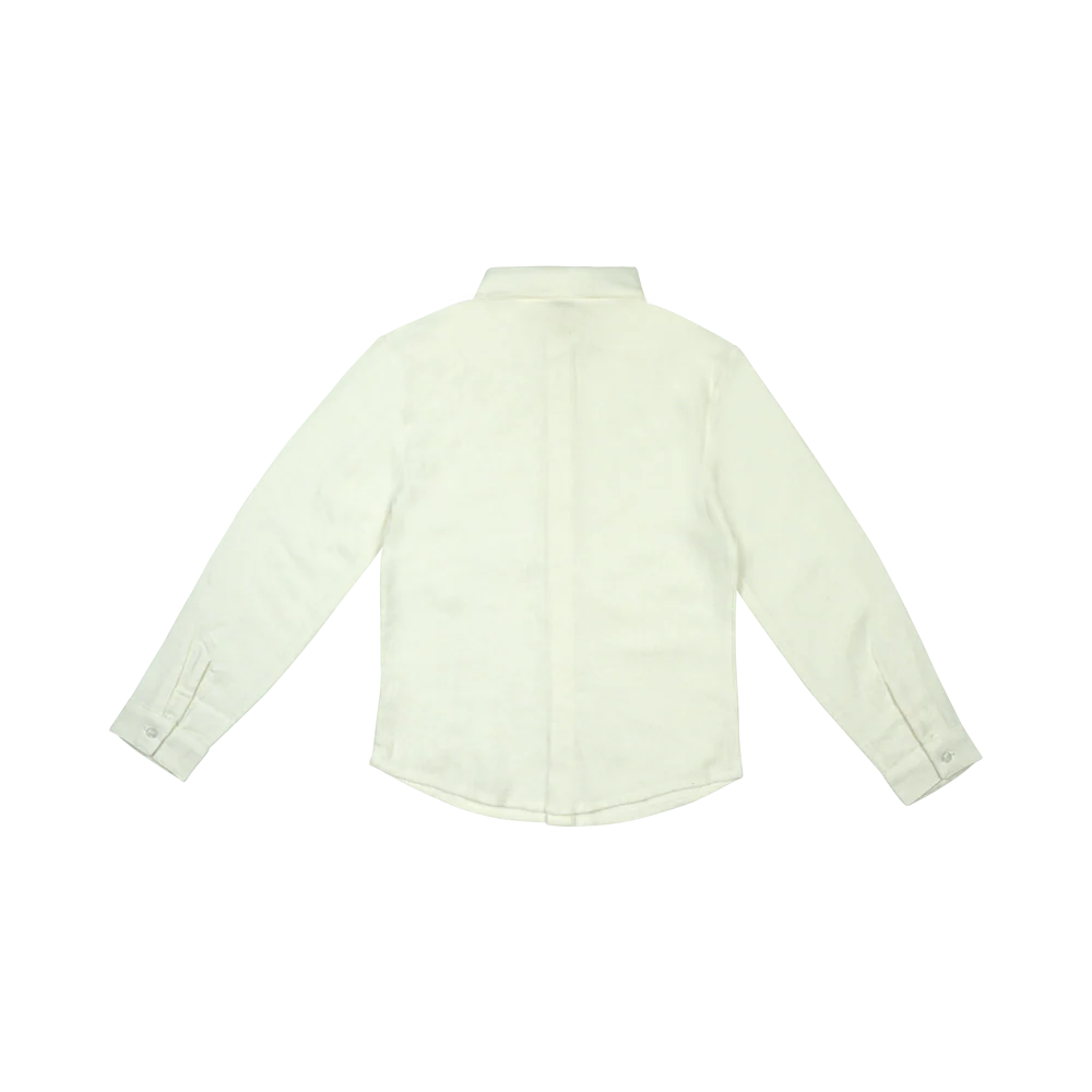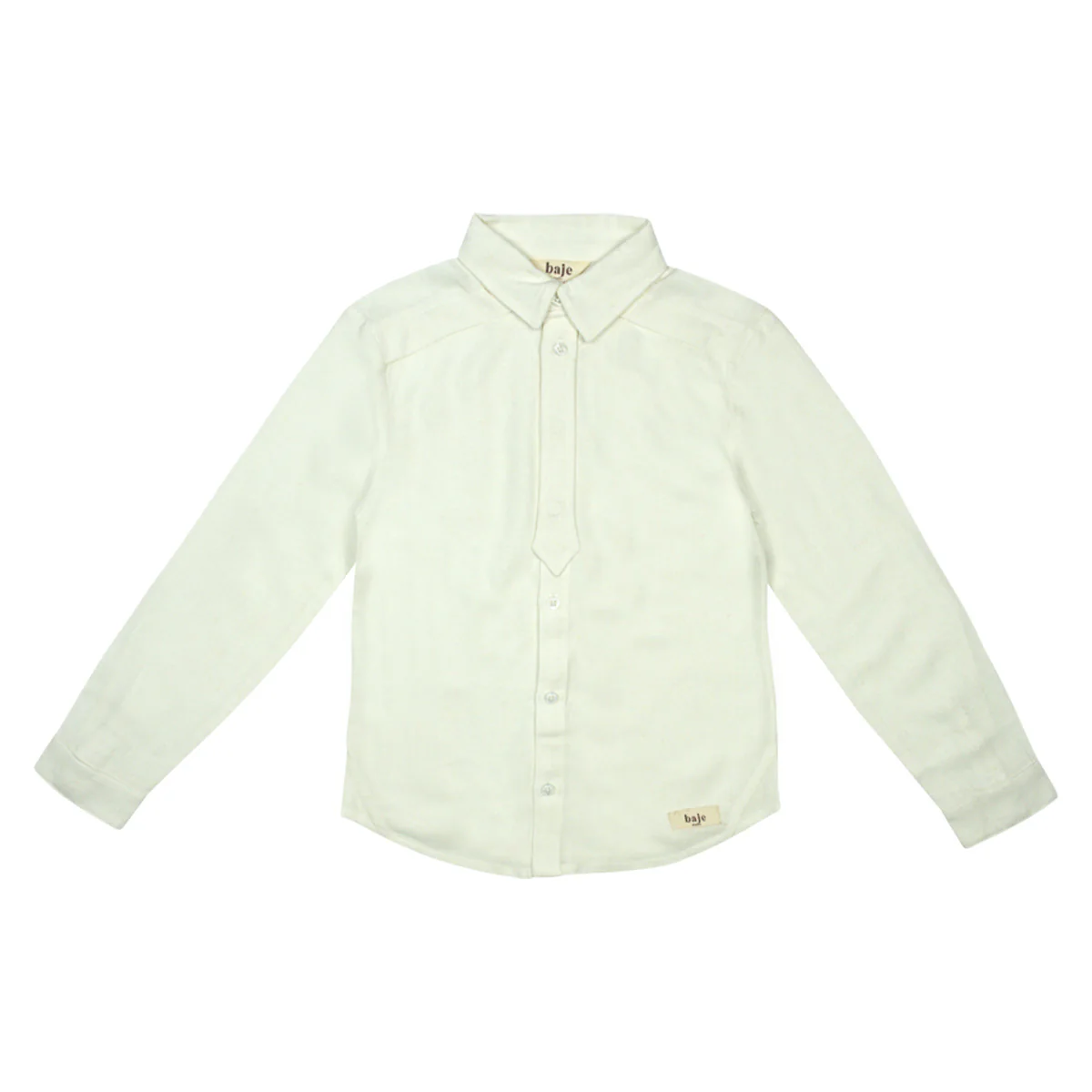 Stoere look, mooie offwhite kleur, rechte pasvorm en knoopsluiting: Texas blouse van Baje Studio is perfect in balans. De stijl heeft een klassieke uitstraling met een mooie lookalike stropdas. Blouse Texas is gemaakt van een compacte, zachte linnen/viscose kwaliteit. Dit is de perfecte blouse voor alle jongens.