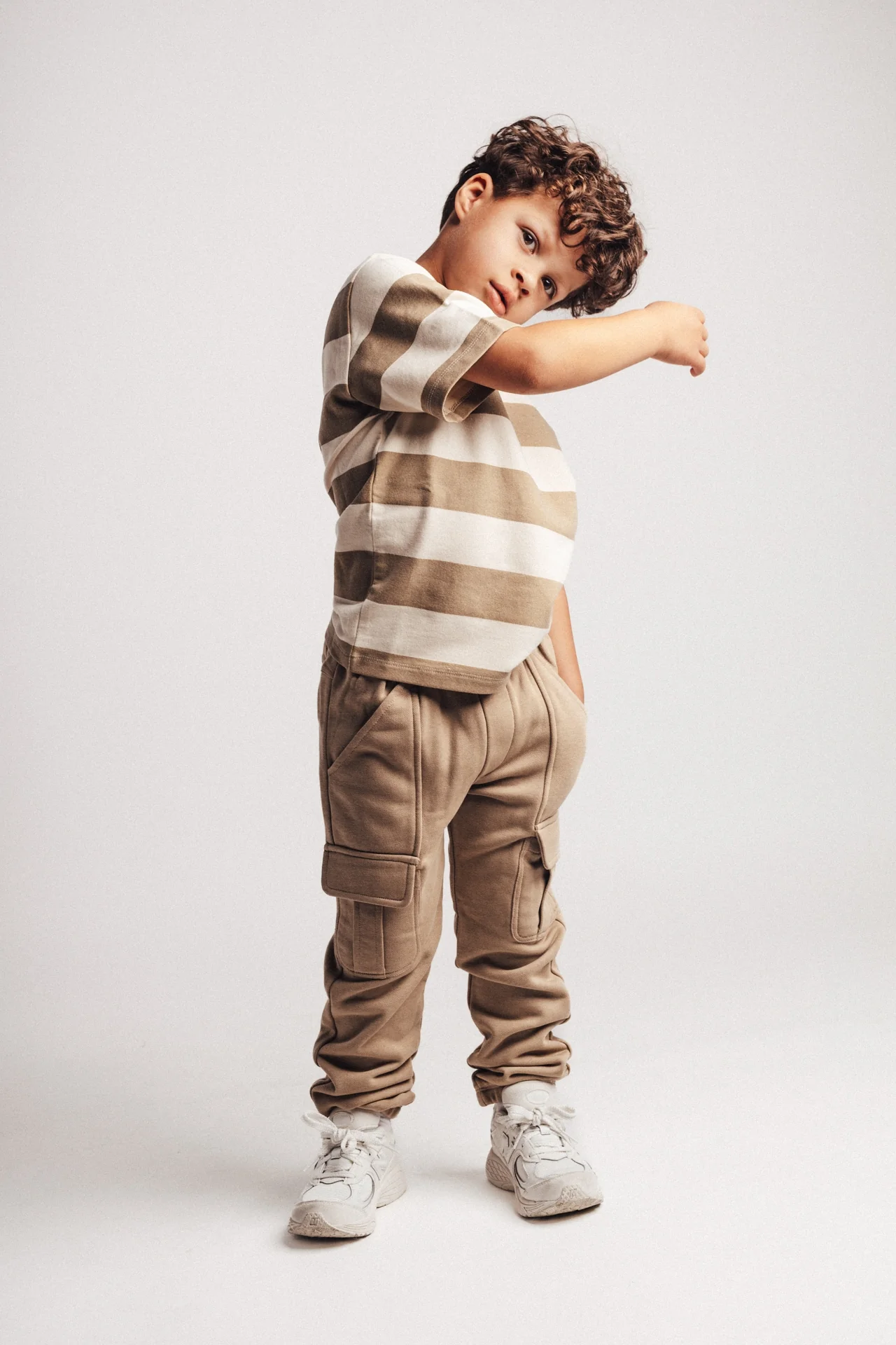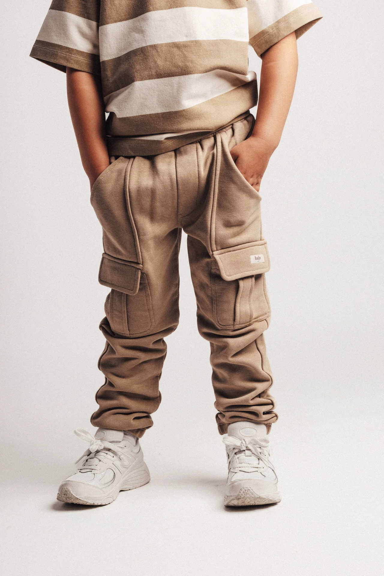 Stoere lange broek van Baje Studio. Pants Caude heeft cargo zakken op kniehoogte en een de mooie kleur taupe cafe. Dit is een wat vergrijsde taupe tint.