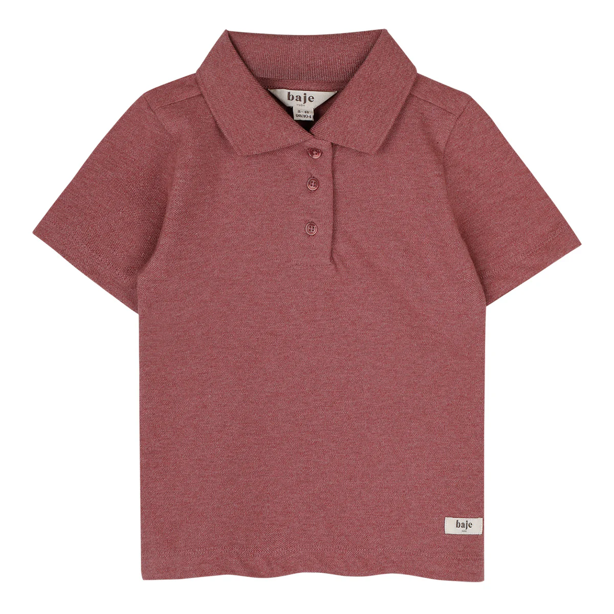 Prachtige polo voor jongens/unisex. Comfortabel om te dragen met een relaxte fit. Polo Gijon van Baje Studio heeft de kleur red mahagony. Red mahagony zit qua tint tussen donkerroze en rood in.