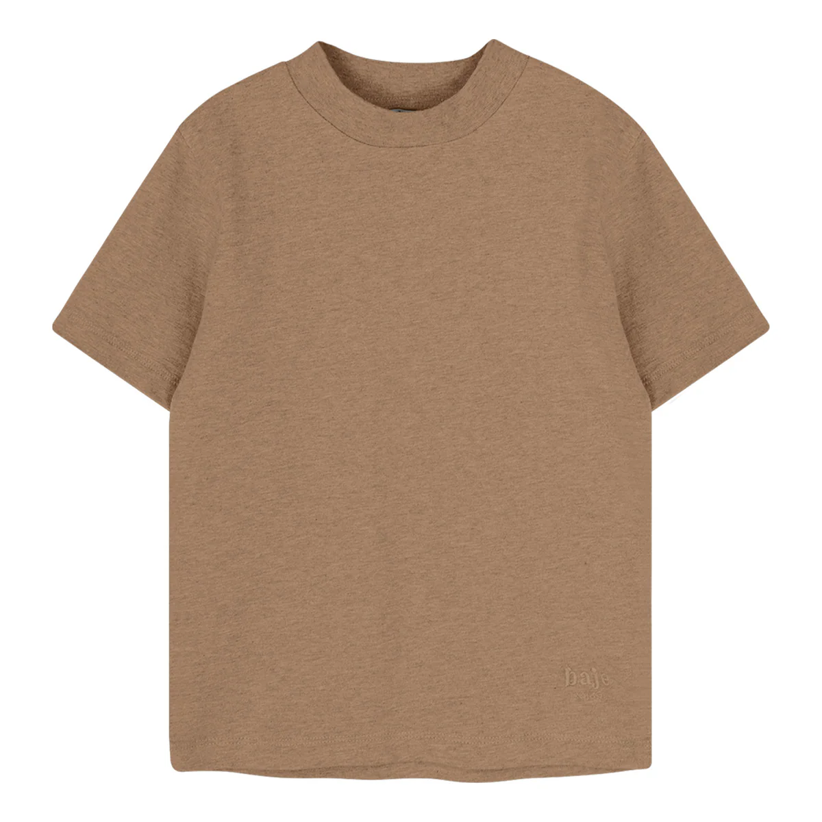 Basic T-shirt met korte mouwen van mooie kwaliteit. Tee Adrian heeft de kleur brown coconut, deze valt als lichtbruine kleur. Neigt wat naar caramel.