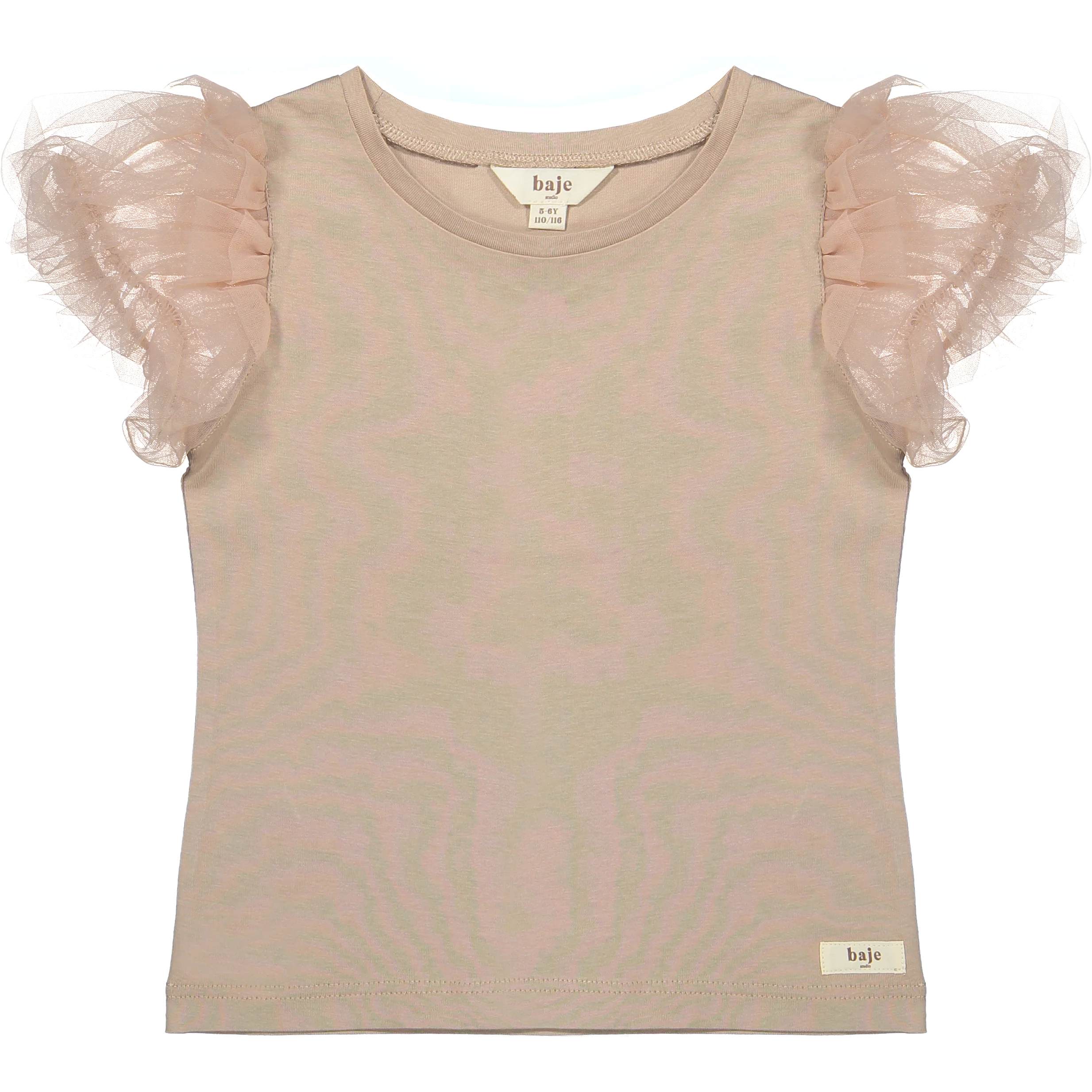 Schattig shirt met tule mouwtjes. Het katoen van het shirt en het tule van de mouwen hebben wel wat kleurverschil.