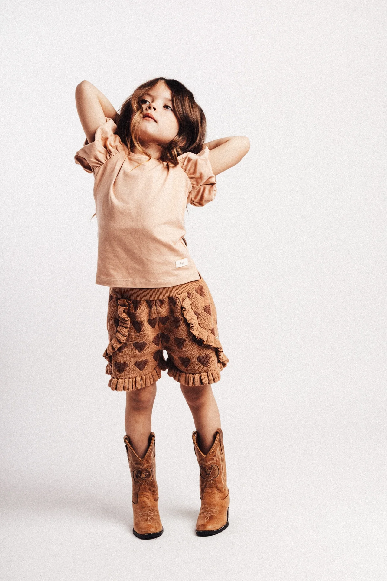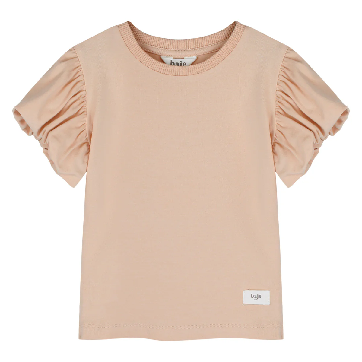 Roze meiden shirt met ballon mouwen. Top Valencia van Baje Studio is zowel speels als heerlijk meisjesachtig dankzij ballon mouw. Valencia is makkelijk te combineren met diverse rokjes en broeken, en zal elk outfit tot een plaatje toveren. De kleur rose cafe is een zachte oudroze tint.