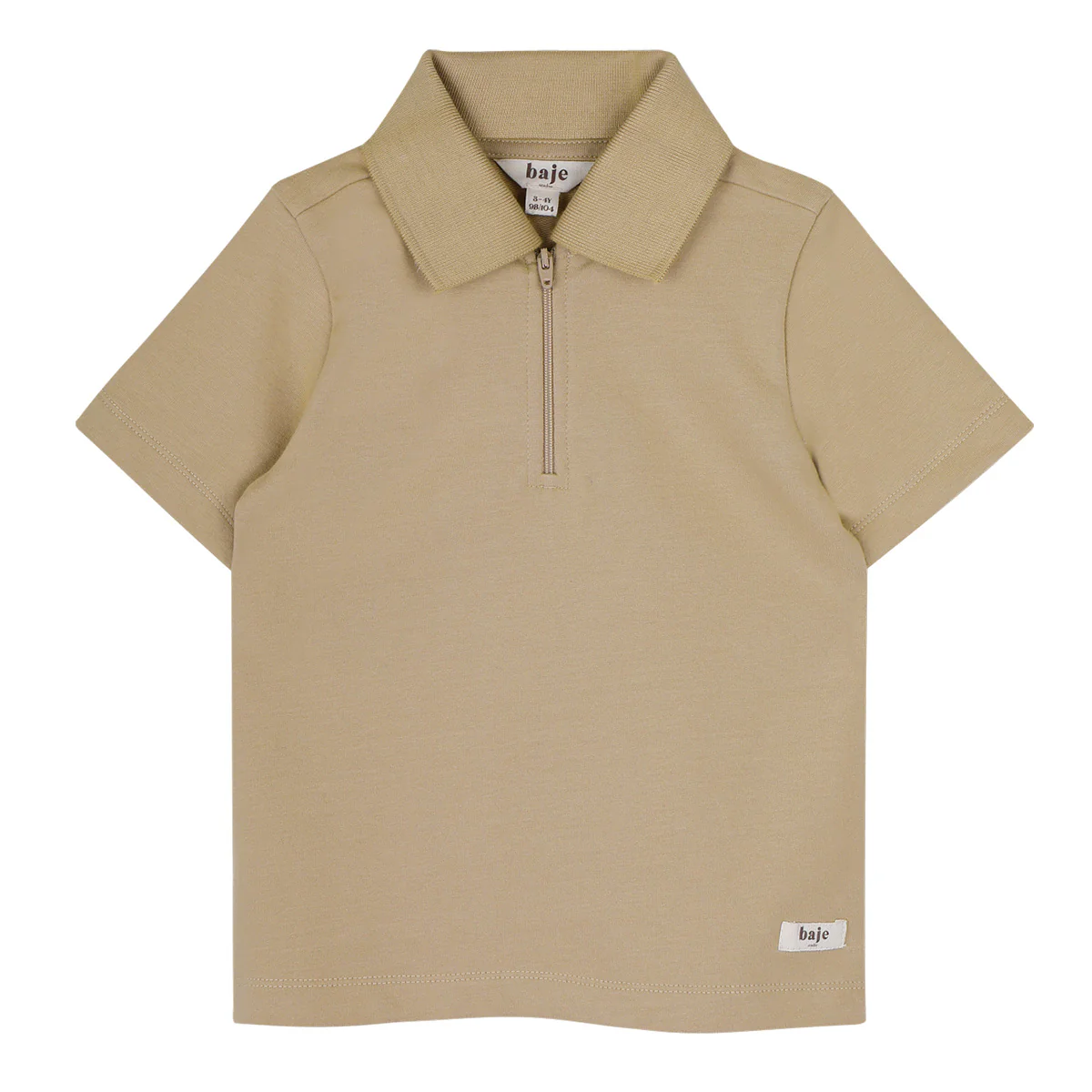 Polo met korte mouwen en een rits. Shortsleeve polo is weer een prachtig item uit de Baje Studio zomercollectie voor jongens. Eenvoudig, stoer en van goede kwaliteit. De kleur creme fawn zit qua tint tussen beige en crème in.