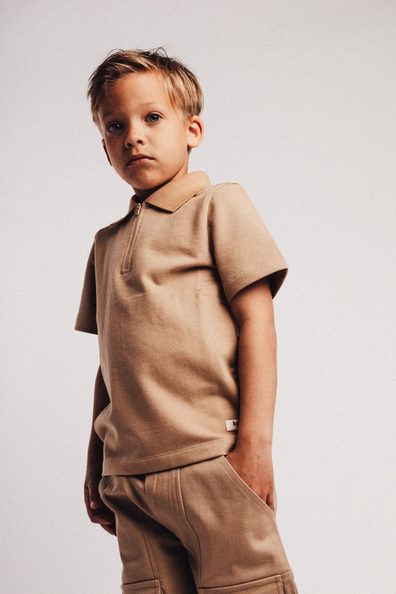 Polo met korte mouwen en een rits sluiting bij de hals. Shortsleeve polo is weer een prachtig item uit de Baje Studio zomercollectie voor jongens. Eenvoudig, stoer en van goede kwaliteit. De kleur taupe cafe is een koele taupe tint.