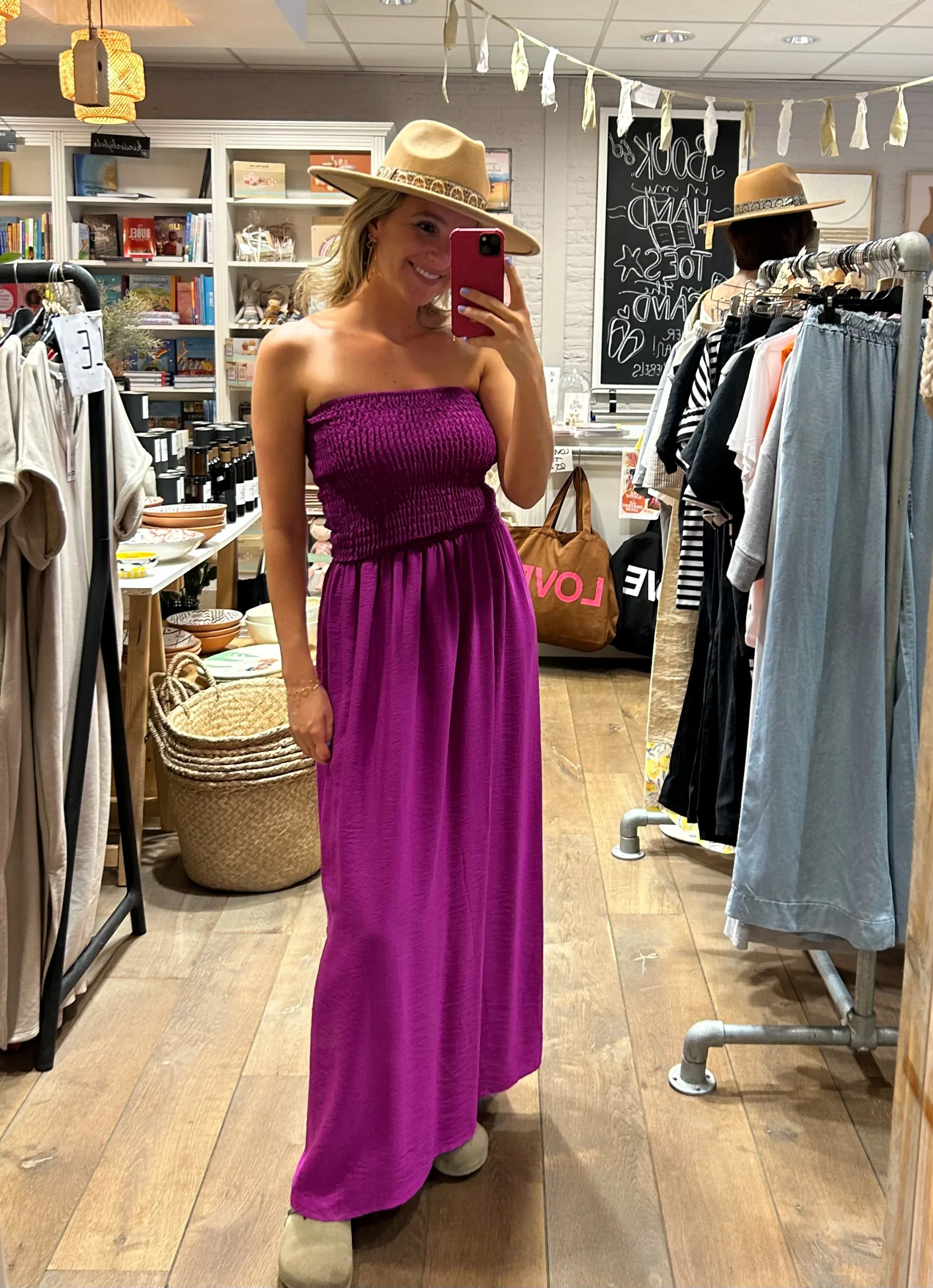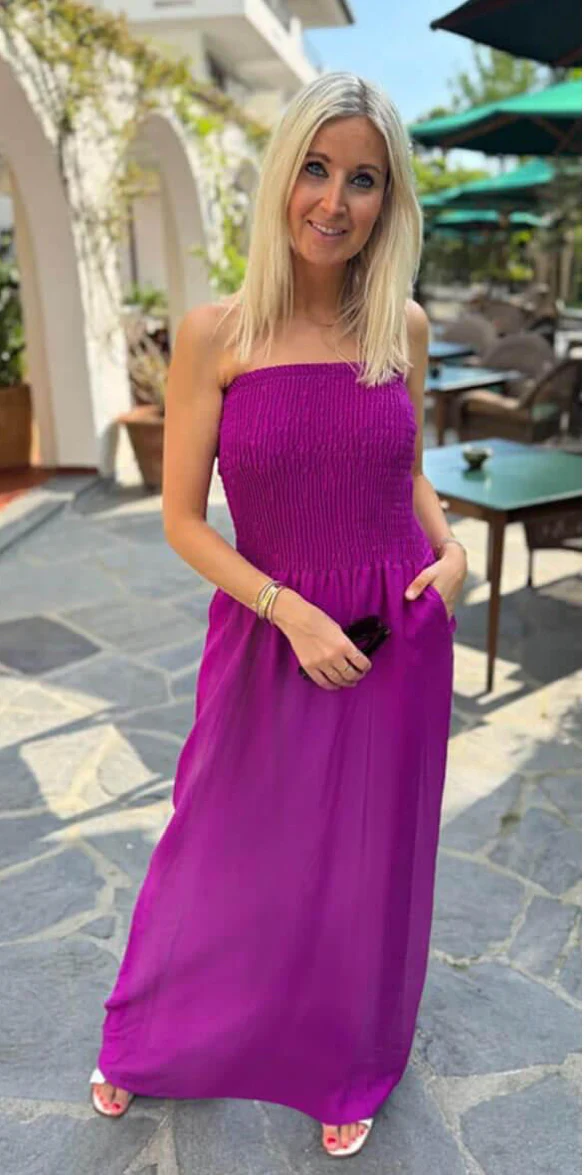 Luchtig, vrouwelijk en heerlijk comfortabel. Deze bandeaujurk is jouw go-to voor zonnige dagen, of je nu op het strand bent of een terrasje pakt. One size en verkrijgbaar in 4 kleuren.