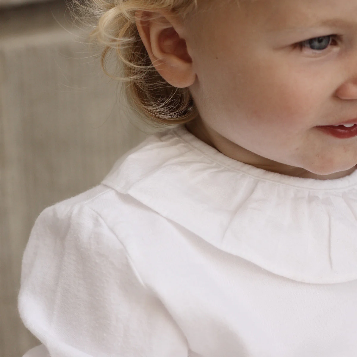 Deze blouse met kraagje van ruches is tijdloos en eindeloos te combineren. Een onmisbaar item in de kledingkast van jouw meisje. De kraag van ruches maakt elk outfit charmant. De mouwuiteinden hebben ook een schattige ruche. Een mooi basic item om zo te dragen maar ook onder een vestje of trui zorgt dit tuniekje voor mooie details. De sluiting van de blouse zit aan de achterkant en de knopen zijn parelmoer knopen.