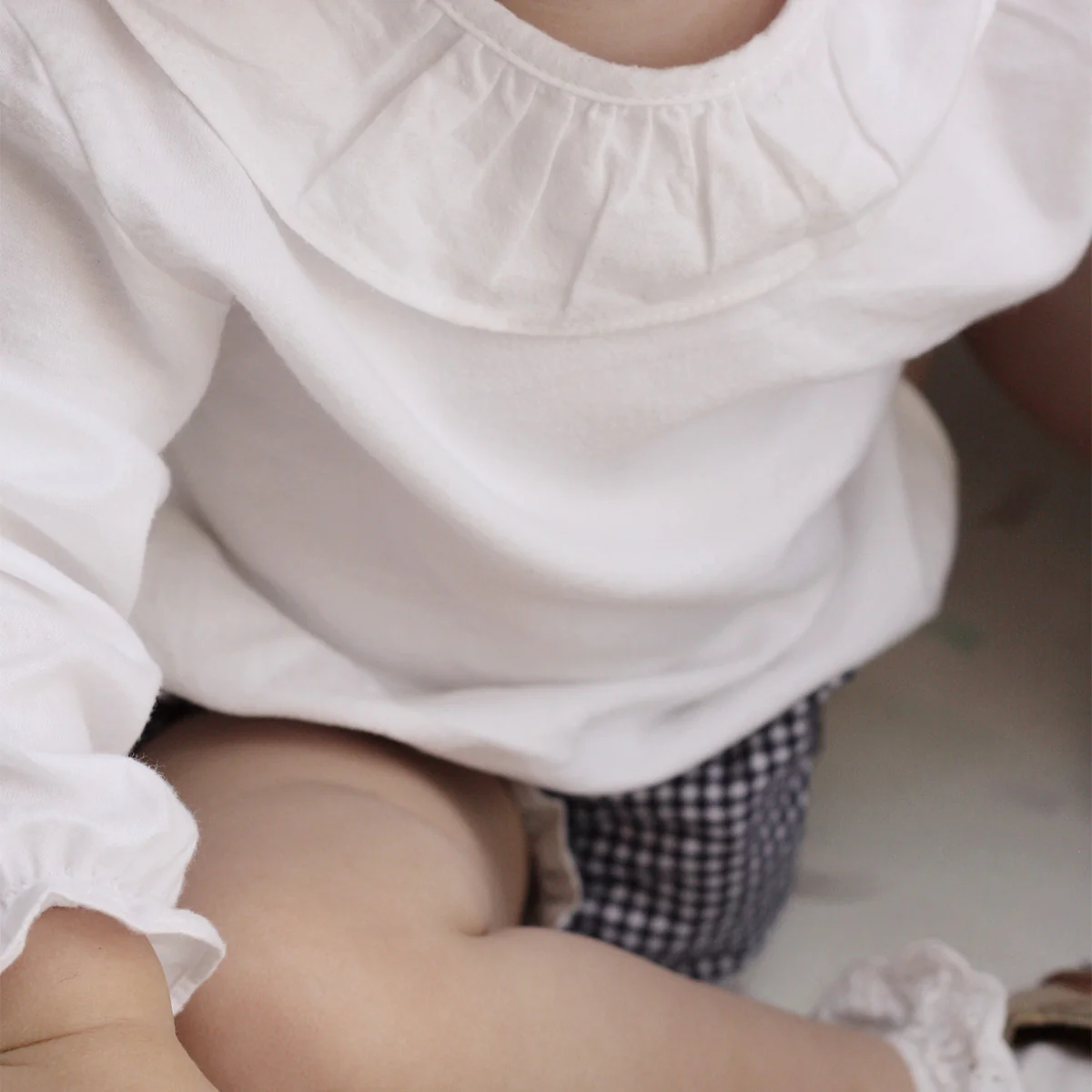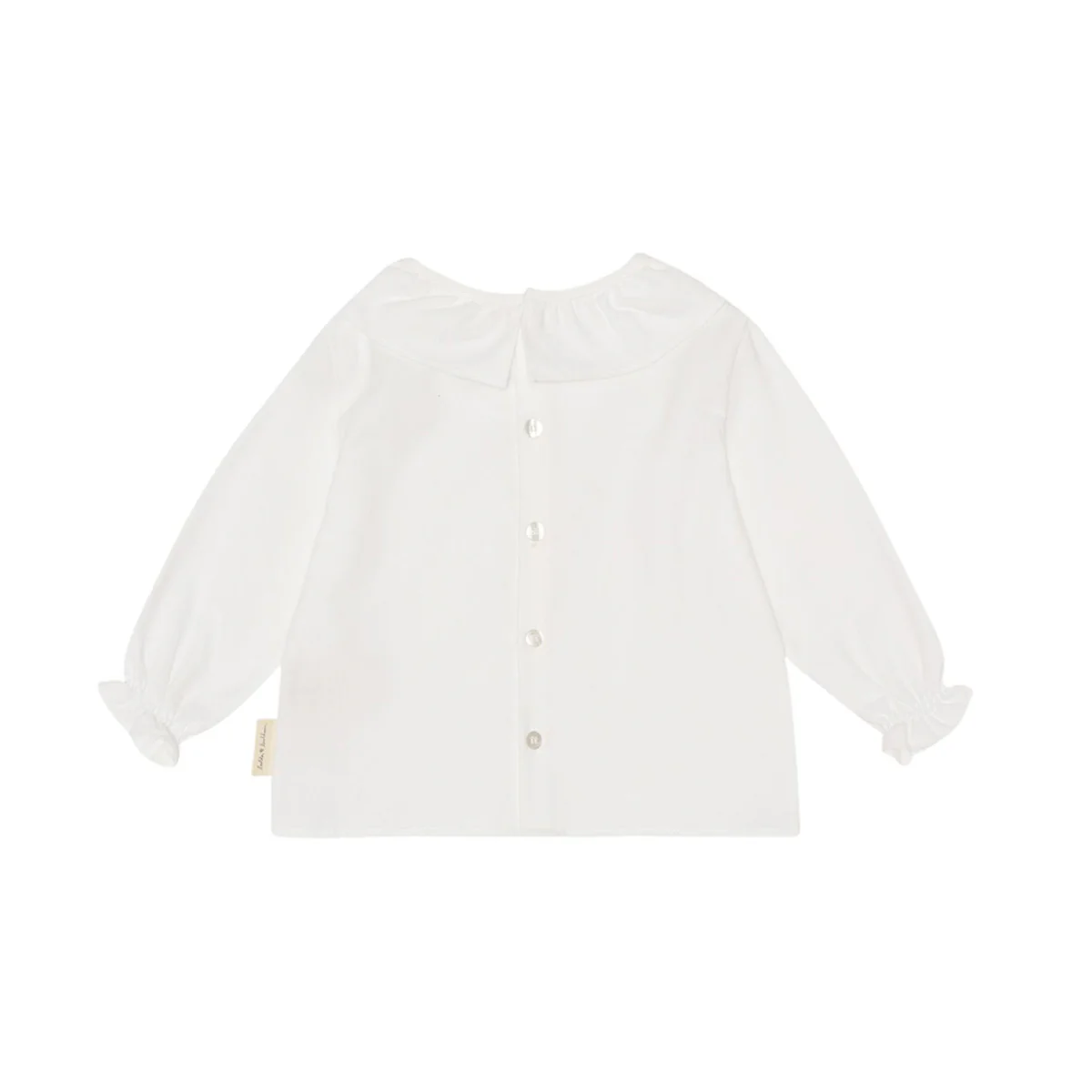 100% biologisch katoen. Deze witte blouse is gemaakt van het zachtste geborstelde katoen, wat zorgt voor comfort voor de baby.