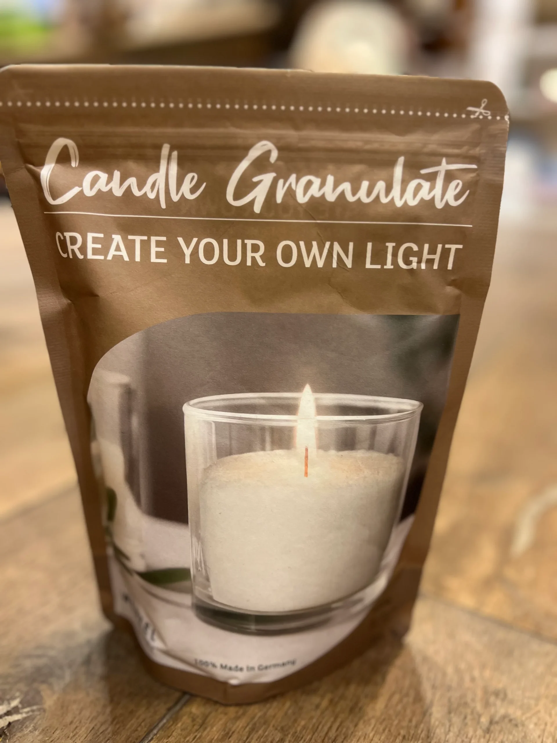 De moderne Kaarsenkorrels bestaan uit 400 g paraffine en zijn verpakt in een handige zak die perfect is als cadeau of voor eigen gebruik. De inhoud is voldoende om meerdere kaarsen te vullen – afhankelijk van de grootte van je potjes.