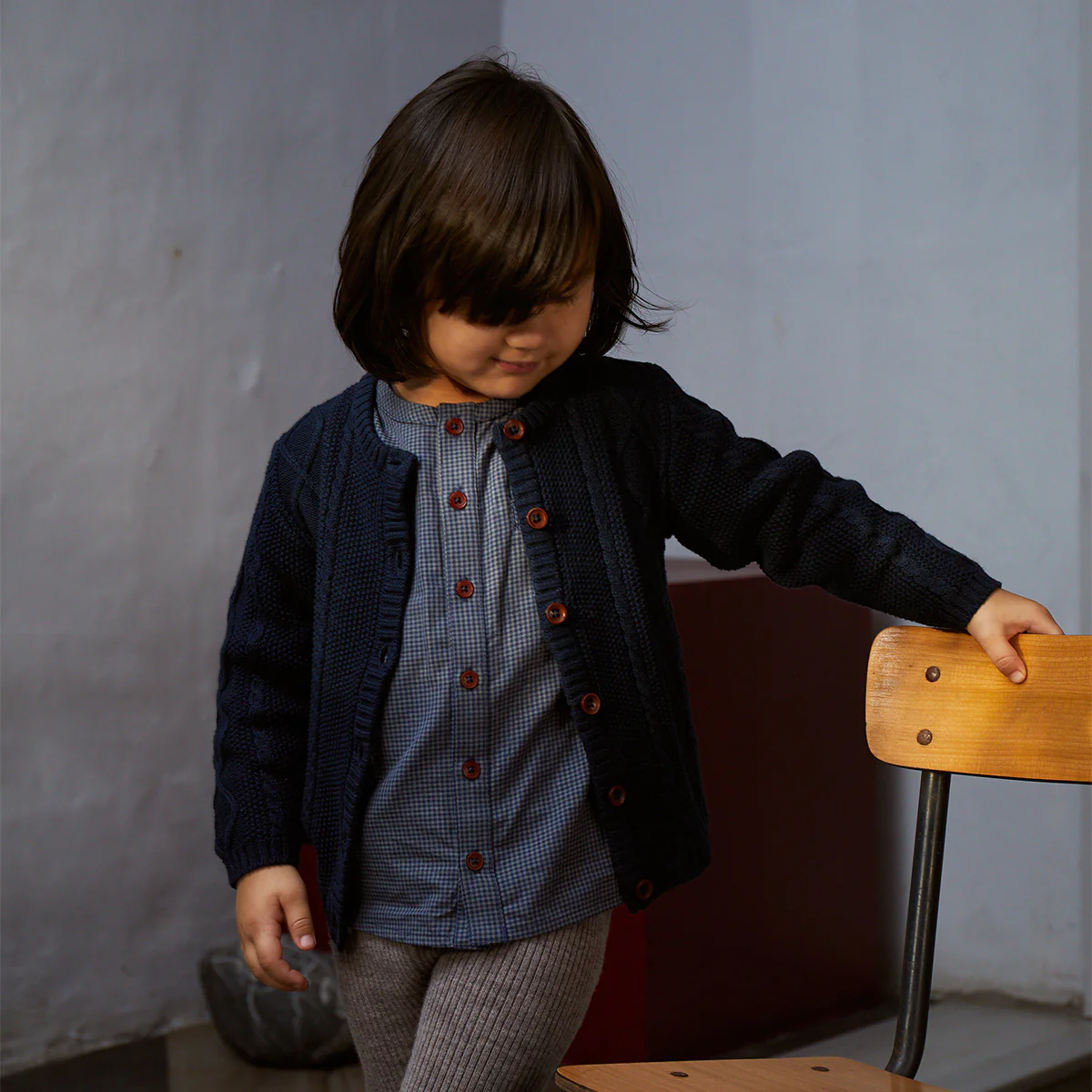 Deze geruite blouse met knoopsluiting is perfect voor het najaar en de winter. De kleuren zijn marineblauw en grijs.