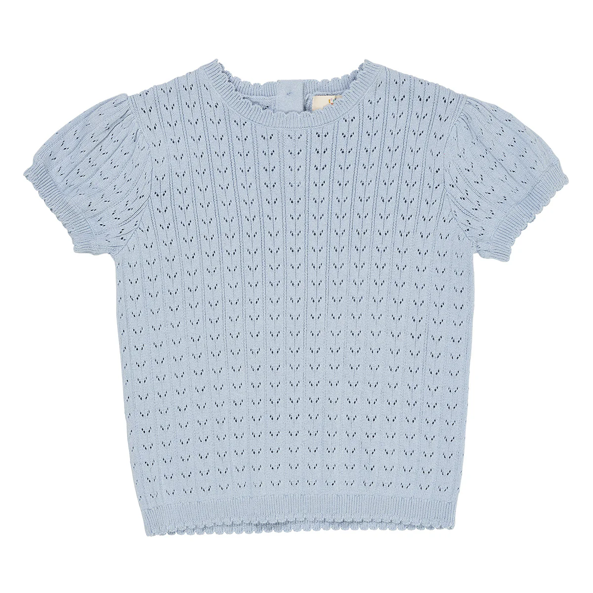 De gebreide pointelle blouse is ideaal voor zowel casual dagen als speciale gelegenheden en biedt een tijdloze stijl en veelzijdigheid, waardoor het een must-have is voor elke jonge fashionista.