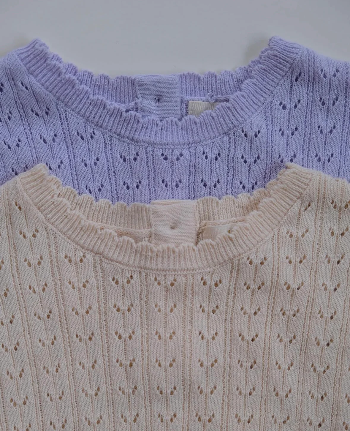 De gebreide pointelle blouse is een charmante toevoeging aan de garderobe van uw kind, waarbij delicate gebreide pointelle-details worden gecombineerd met zachte, ademende stof.