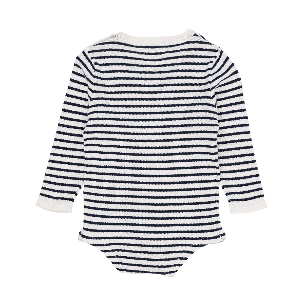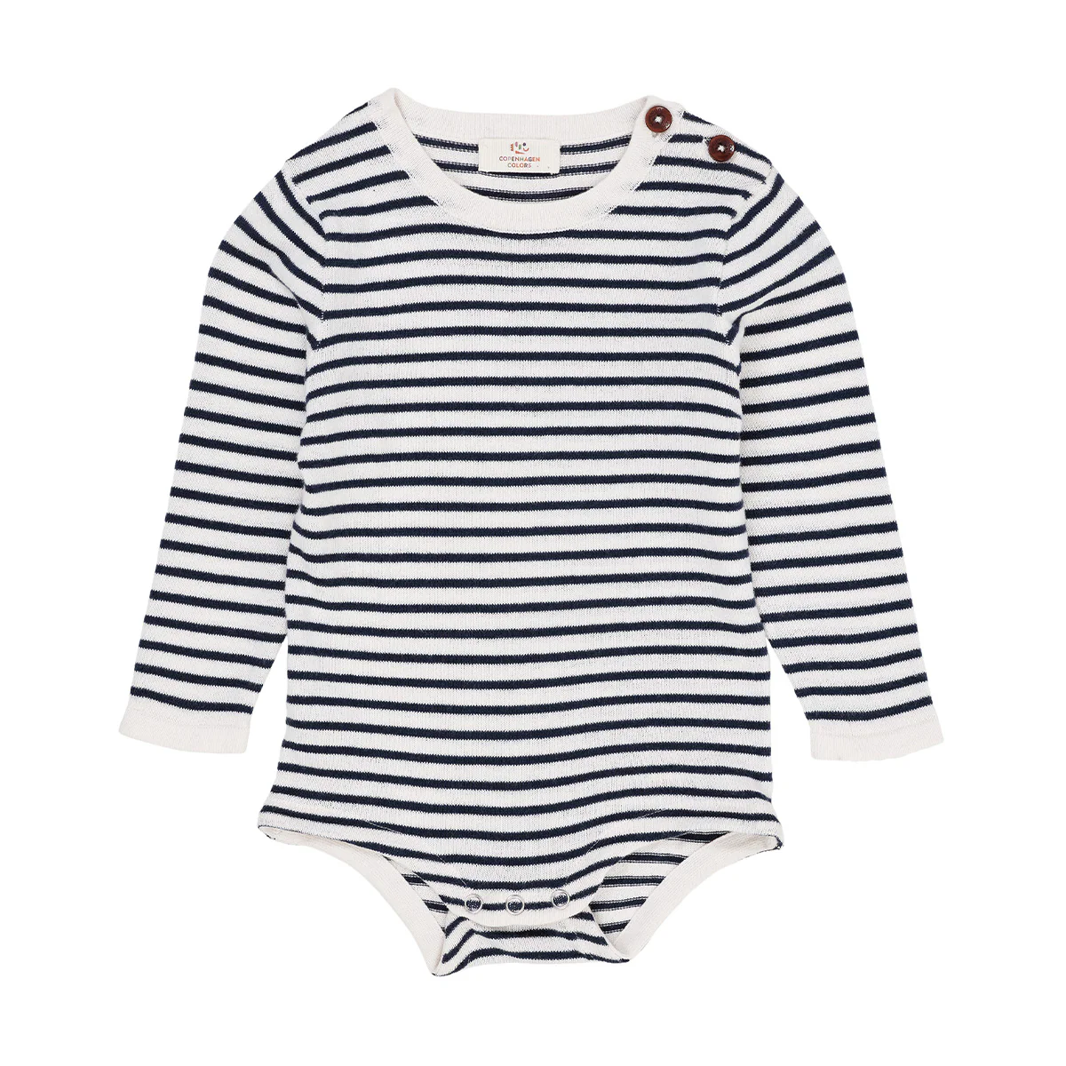 Ontdek de veelzijdige gebreide baby body van Copenhagen Colors. De gestreepte romper heeft lange mouwen en is voorzien van een knoopsluiting op de schouder. Deze dun gebreide romper is gemaakt van licht en biologisch katoen van topkwaliteit, perfect voor het hele jaar door.