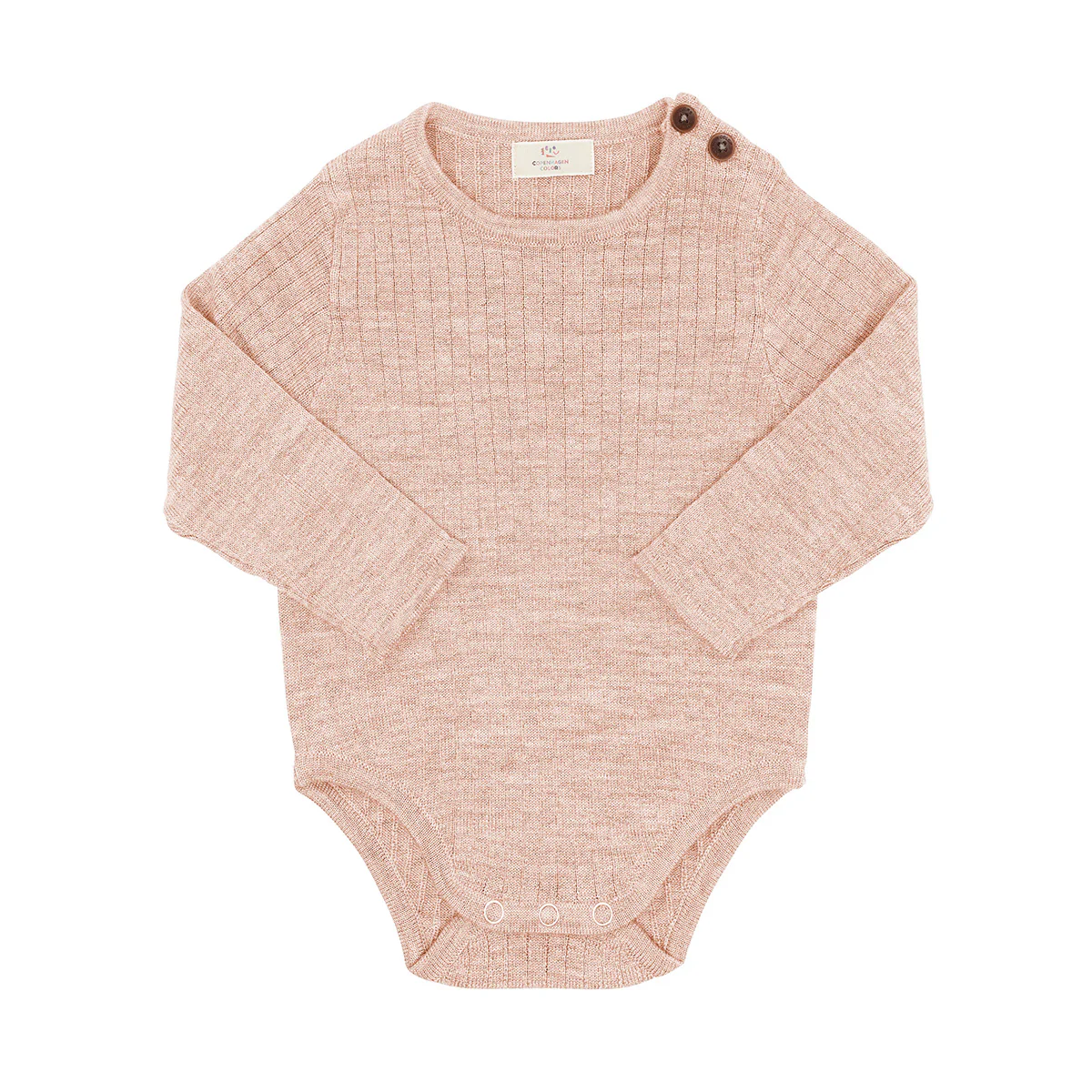 Een mooie klassieke romper van prachtige kwaliteit. De romper is rib gebreid van pure merino wol en zal jouw mini heerlijk warm houden. De rib romper heeft bij de halsopening twee knoopjes. Deze romper heeft een zachte roze kleur en zal elk klein baby meisje laten stralen.