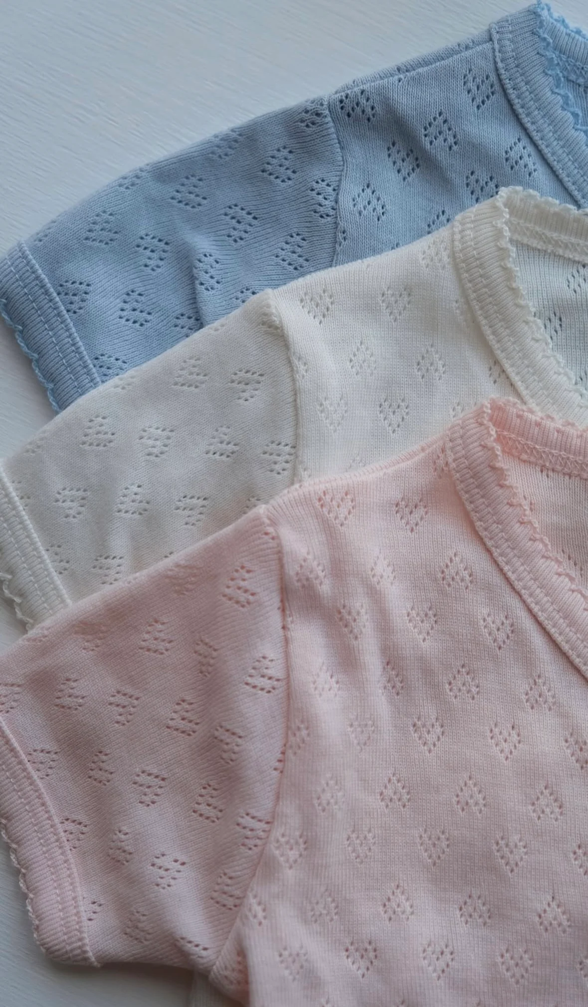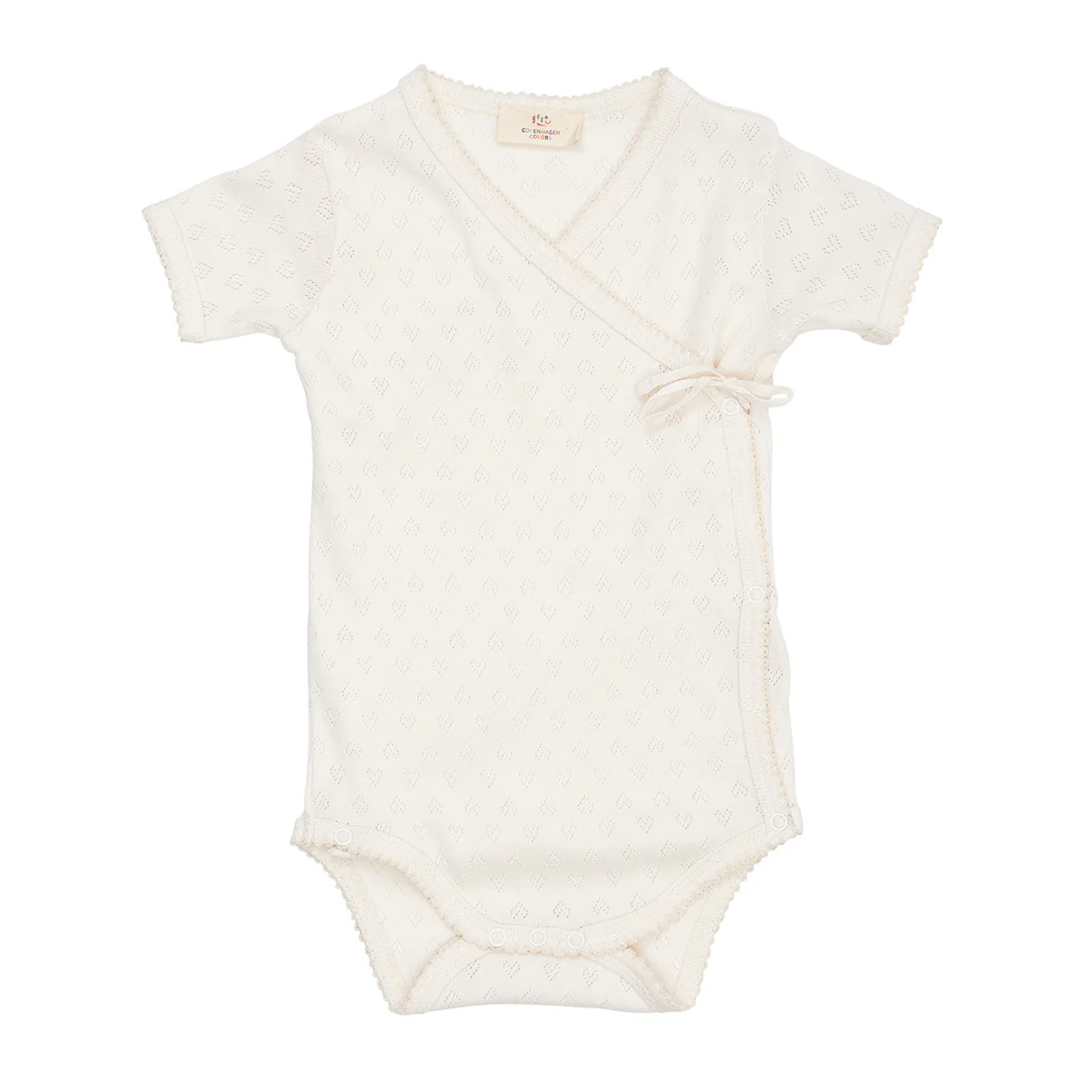 Ervaar het beste voor jouw baby meisje op het gebied van comfort en stijl, met deze pointelle overslag romper. De pointelle romper heeft een subtiel hartjes patroon, met zorg vervaardigd uit biologisch katoen. Deze schattige overslag romper is voorzien van verfijnde picot-randen die een charmant accent toevoegen aan het ontwerp. Het super zachte jersey weefsel garandeert een zachte aanraking op de tere huid van je baby, waardoor het de perfecte pasvorm is voor jouw kleine meisje.