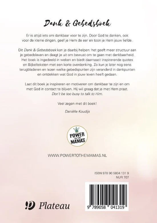Laat dit boek je inspireren en motiveren om dankbaar te zijn en om met God in contact te blijven. Hij wil graag dat je met Hem praat. Don’t be too busy to talk to Him.