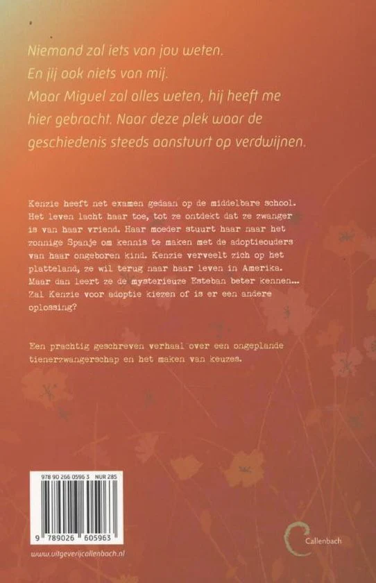 Ze is er alleen niet op vakantie of om te werken. Kenzie heeft een groot probleem. Ze is zwanger van haar vriend, en haar moeder heeft haar rücksichtslos naar het verre Spanje gestuurd om kennis te maken met de adoptieouders van haar ongeboren kind.