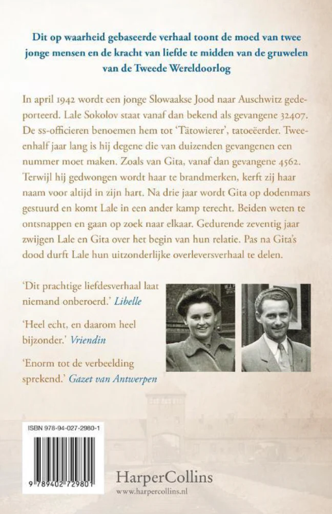 In april 1942 wordt een jonge Slowaakse Jood naar Auschwitz gedeporteerd. Lale Sokolov staat vanaf dan bekend als gevangene 32407. De ss-offi cieren benoemen hem tot ‘Tätowierer’, tatoeëerder. Tweeënhalf jaar lang is hij degene die van duizenden gevangenen een nummer moet maken. Zoals van Gita, vanaf dan gevangene 34902. Terwijl hij gedwongen wordt haar te brandmerken, kerft zij haar naam voor altijd in zijn hart. Na drie jaar wordt Gita op dodenmars gestuurd en komt Lale in een ander kamp terecht. Beiden weten te ontsnappen en gaan op zoek naar elkaar. Gedurende zeventig jaar zwijgen Lale en Gita over het begin van hun relatie. Pas na Gita’s dood durft Lale hun uitzonderlijke overleversverhaal te delen. ‘De tatoeëerder van Auschwitz’ toont de moed van twee jonge mensen en de kracht van liefde onder de meest extreme omstandigheden.