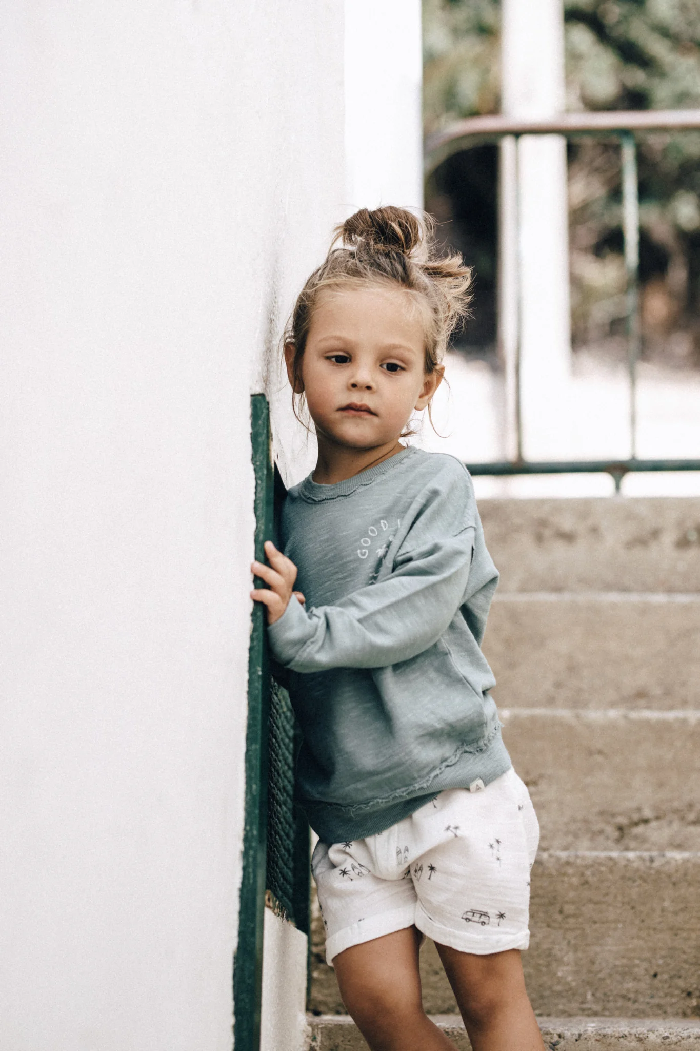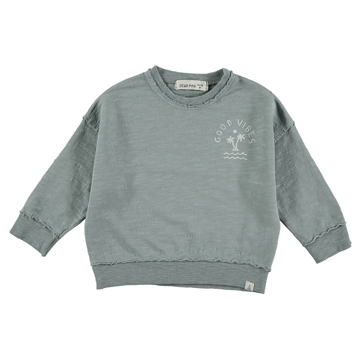 Heerlijk sweatshirt van zacht katoen in een mooie blauw/grijze kleur. Sweater Good Vibes heeft een verwassen look en een opdruk ter hoogte van de borst met een palmboom in combinatie met de tekst ‘Good vibes’. Deze sweater is tof voor zowel jongens als voor meisjes. Perfect voor de nog wat koudere dagen in het voorjaar of de wat killere zomeravonden. Goed te combineren met de andere items uit de Endless Summer Collection van Dear mini.
