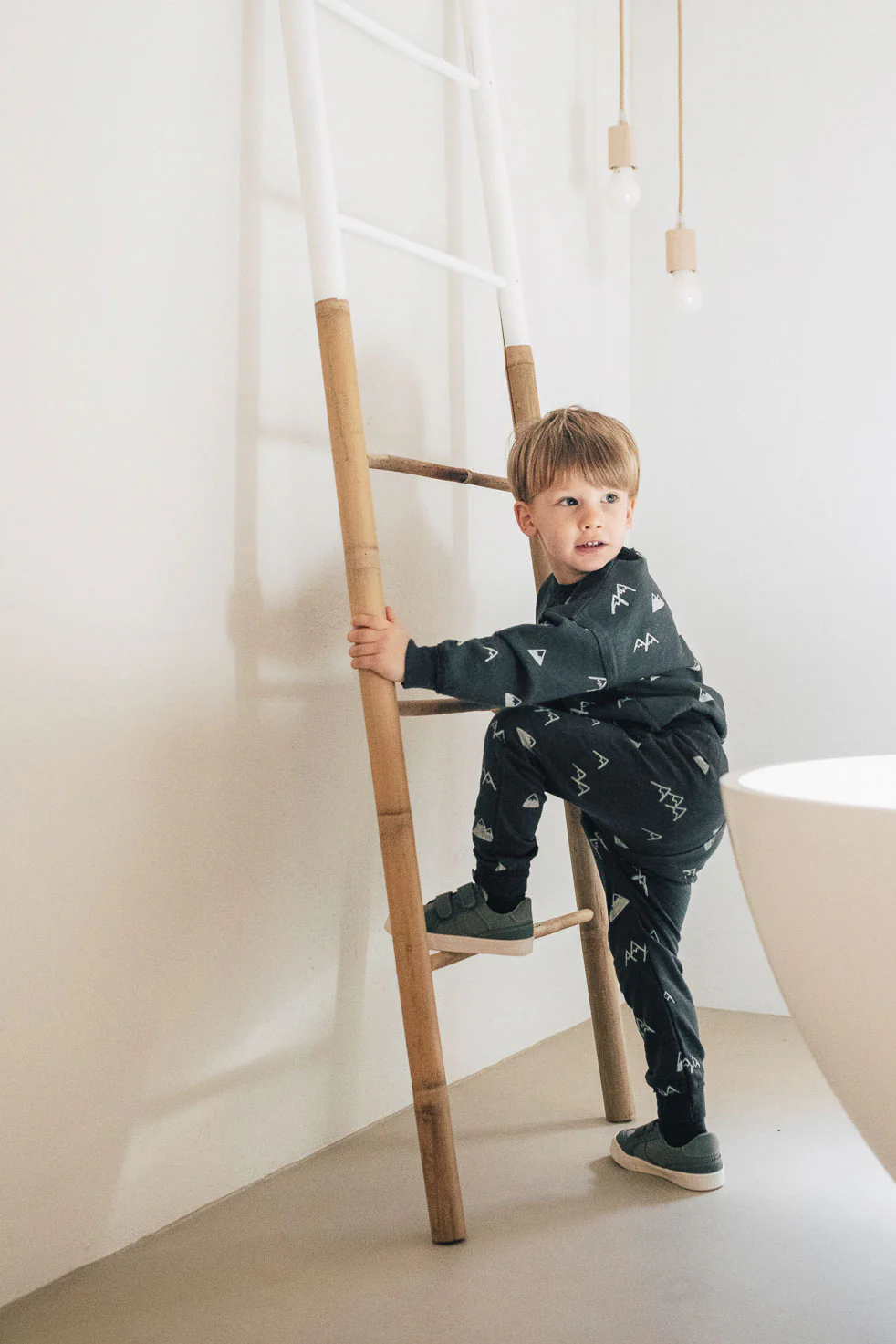 Sweater met bergen, de alpen. Dat maakt deze sweater perfect om mee te nemen op wintersport. Sweater Alps is mooi voor jongen maar kan ook door voor unisex. De kleur wordt ‘shadow gray’ genoemd en is het best te beschrijven als een kleur die ergens tussen marineblauw en antraciet zit. Deze sweater heeft in de kleine maten (62/68 en 74/80) twee houten knoopjes bij de halsopening, bij de grotere maten zijn deze knoopjes er niet meer.
