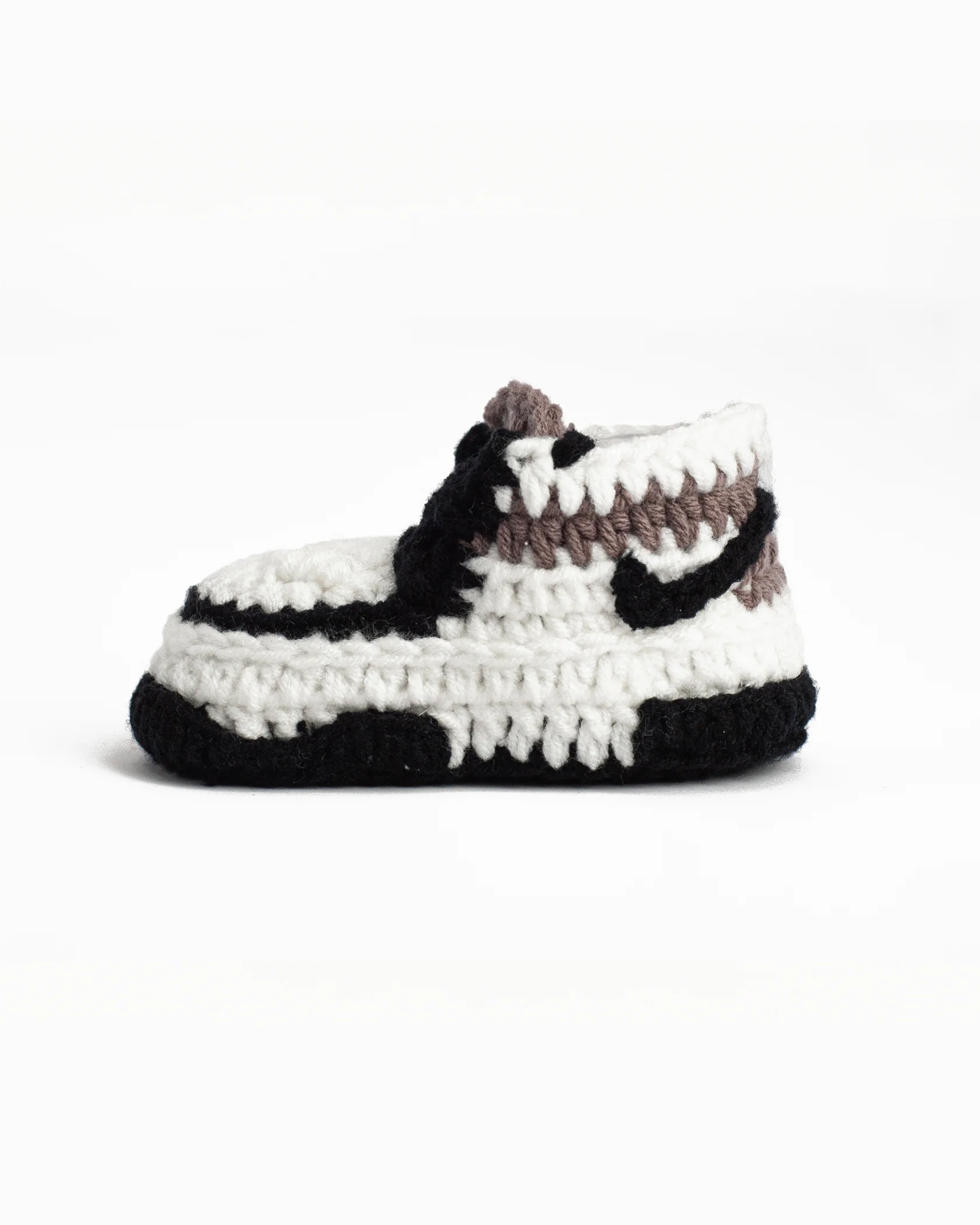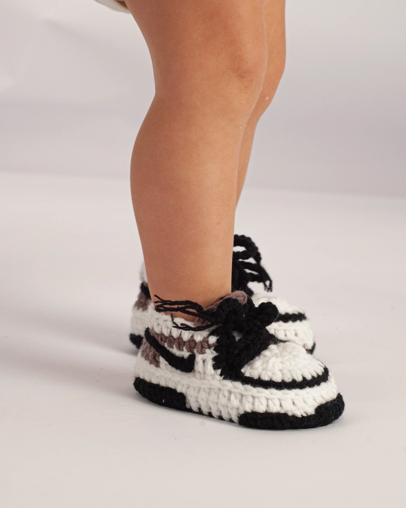 Ontdek onze exclusieve DUNK Mocha Sneaker Sokkies, de perfecte combinatie van stijl en comfort voor je kleintje. Deze handgemaakte sneakersokkies zijn geïnspireerd op de iconische AJ1 sneakers en zijn een echte eyecatcher!