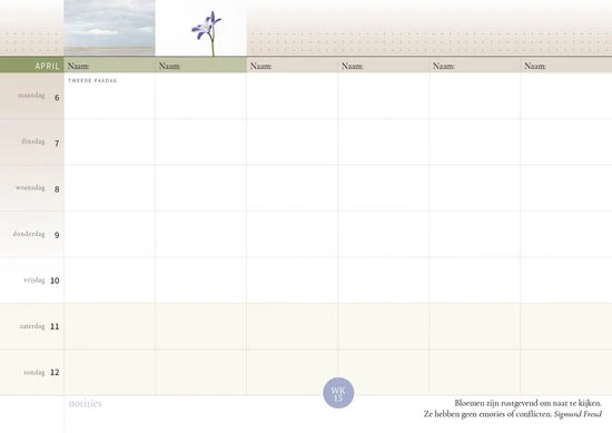“We zijn al een aantal jaren blij met deze familieplanner. De planner is overzichtelijk, heeft voldoende ruimte voor ieder familielid om aantekeningen te noteren. Daarbij staan er iedere week mooie, bijzondere en inspirerende teksten op de kalender. Zoek je een fijne familieplanner? Dan is dit zeker een aanrader.” – review van een gebruiker