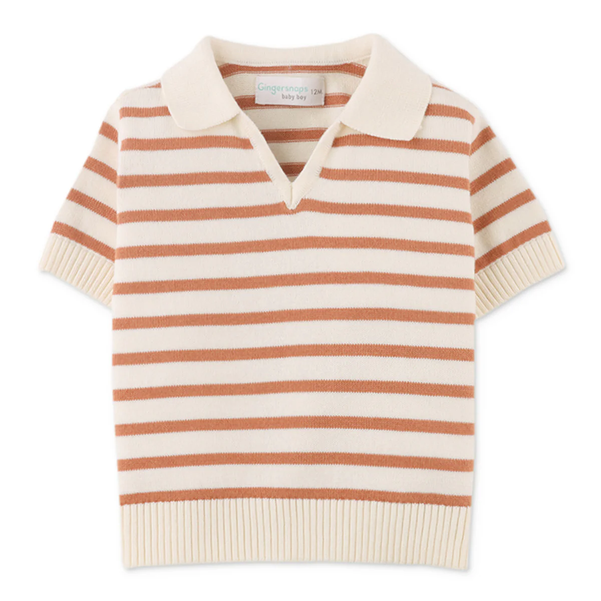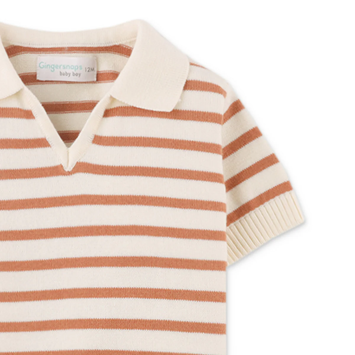 Gingersnaps – knitted polo Ricci – crėme/biscuit gestreept