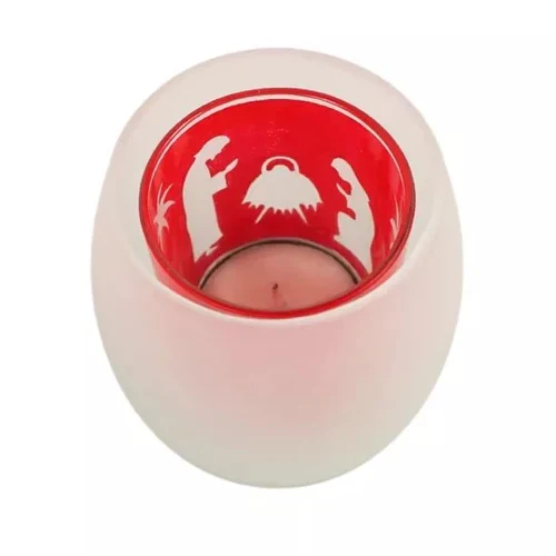 Glazen kerstlichtje met kerststal.