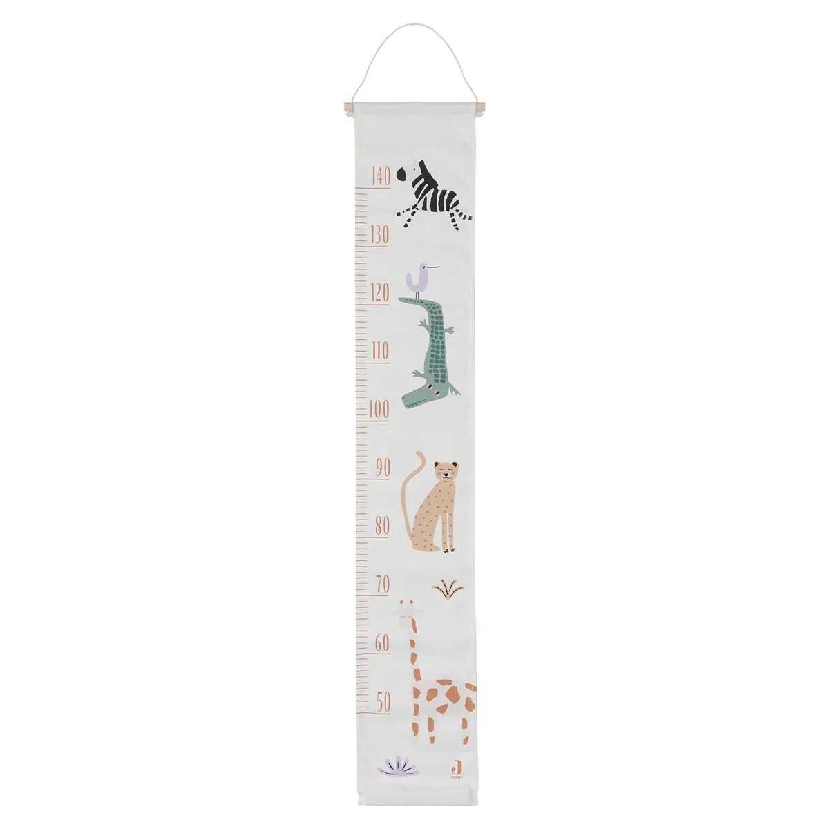 Kinderen groeien als kool, dat hoeven we vast je niet te vertellen. Zij (en jij) vinden het geweldig om hun groeispurten bij te houden, en de Jungle Jambo groeimeter helpt hierbij! In de kleur Oatmeal en versierd met verschillende jungle dieren (waaronder zebra, krokodil, jachtluipaard en kun je tot 140cm meten hoe snel je kleintje groeit. Hang de groeimeter gemakkelijk op aan het lustje en haal hiermee gelijk het jungle thema naar de kinderkamer!
