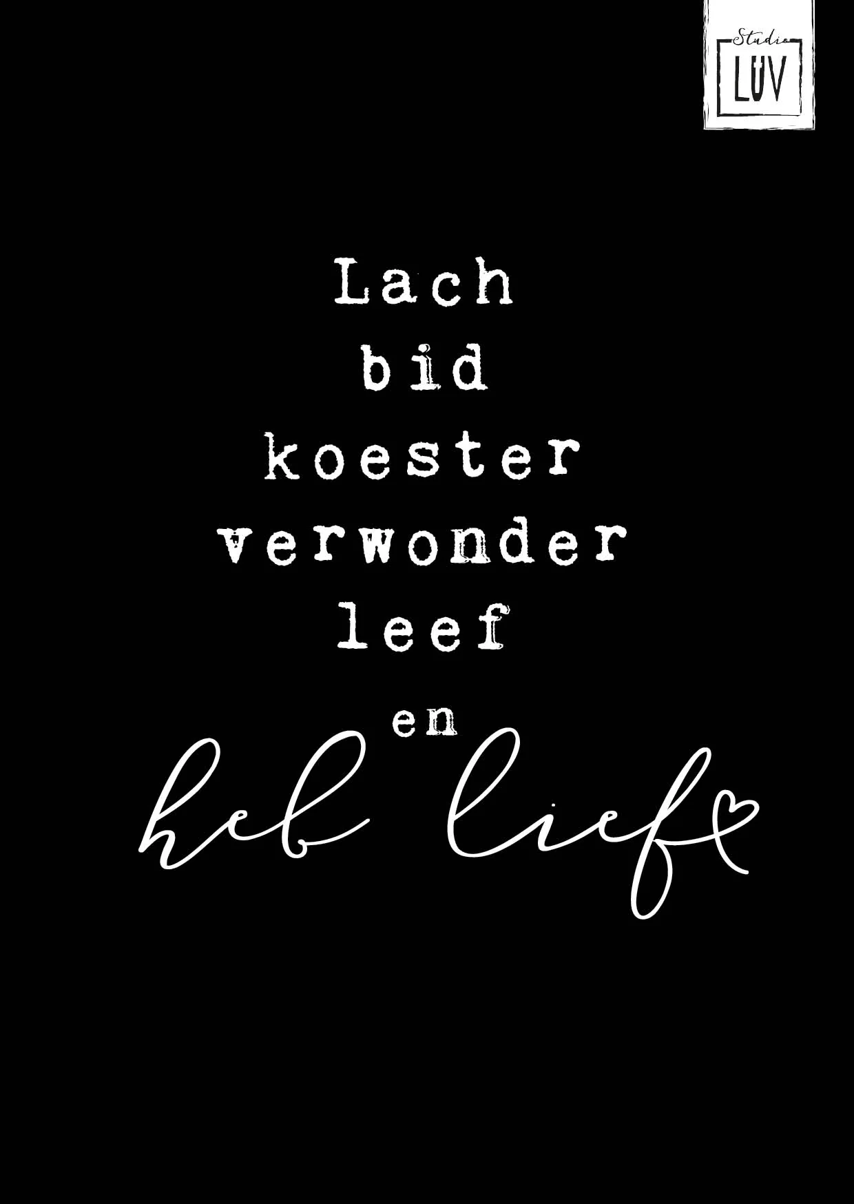 Tekst: Lach, bid, koester, verwonder, leef en heb lief.