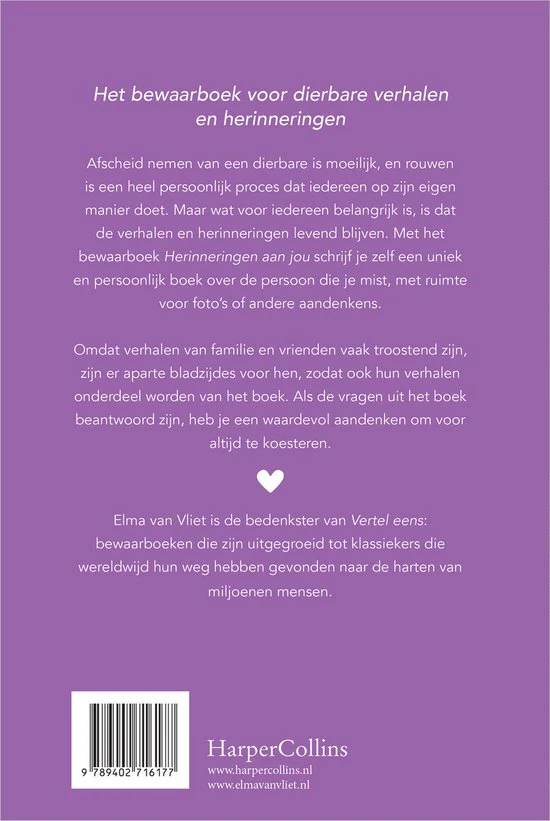 Herinneringen aan jou is een nieuw invulboek in de Vertel eens-serie van Elma van Vliet.