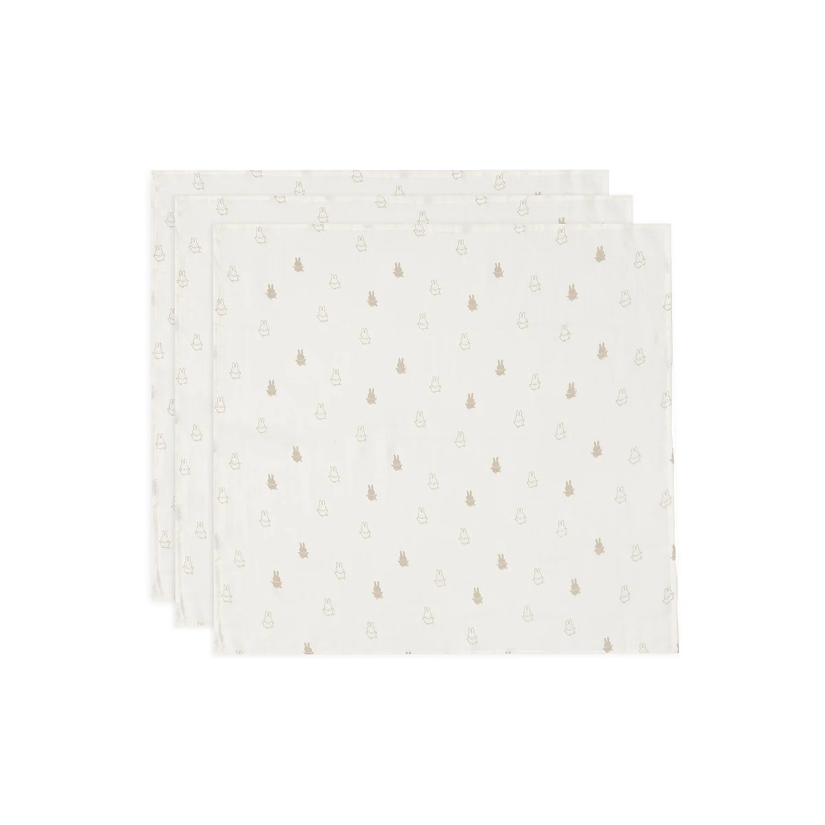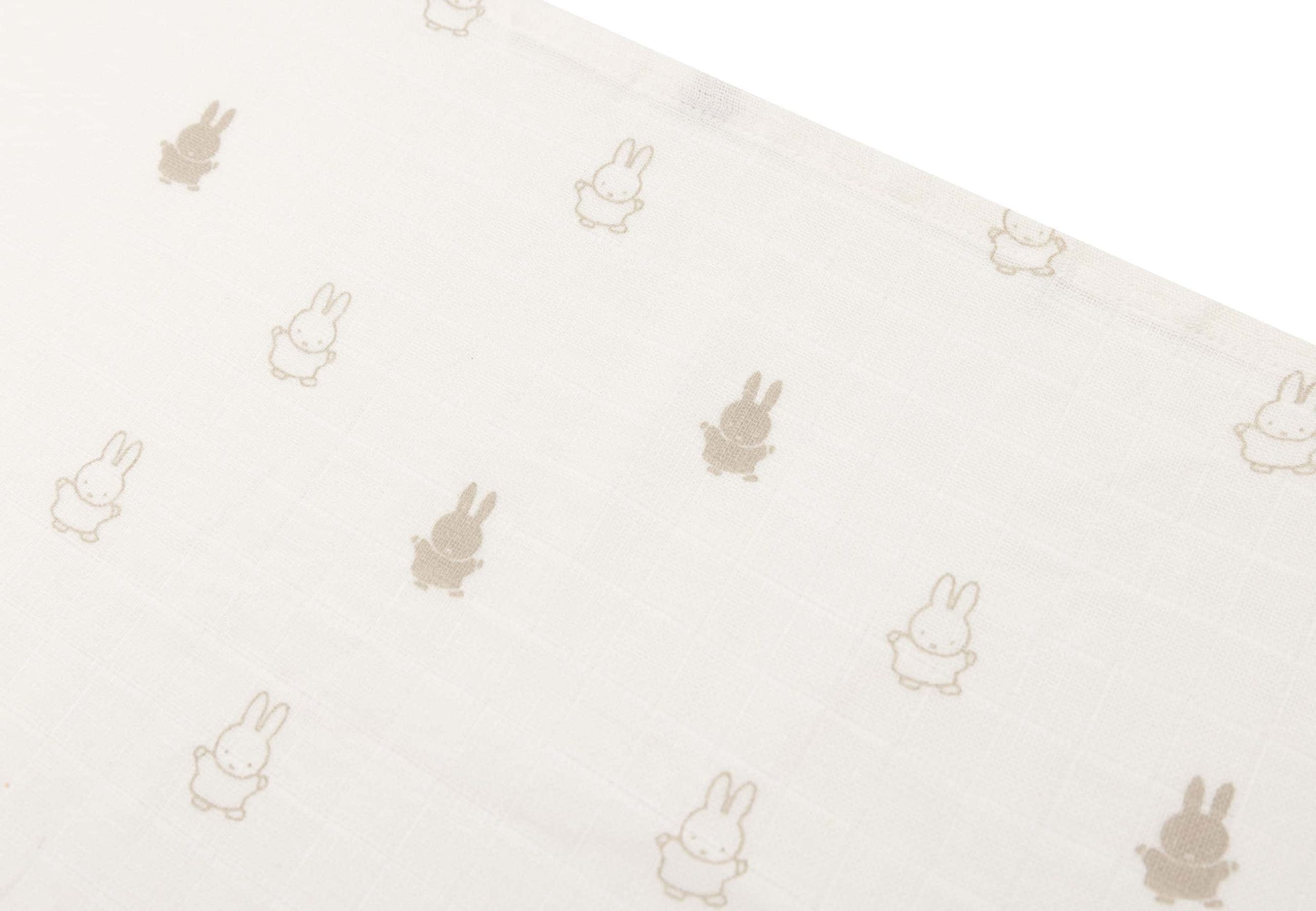 Deze leuke hydrofiele doeken hebben een schattig all-over Nijntje printje. De ondergrond is Ivory en Nijntje heeft de kleur Nougat. De leuke hydrofiele doeken zijn heerlijk zacht en uitermate geschikt voor gevoelige babyhuidjes. De doeleinden voor hydrofiele doeken zijn eindeloos en daarkom komt Happy Miffy in een set van 3 stuks.