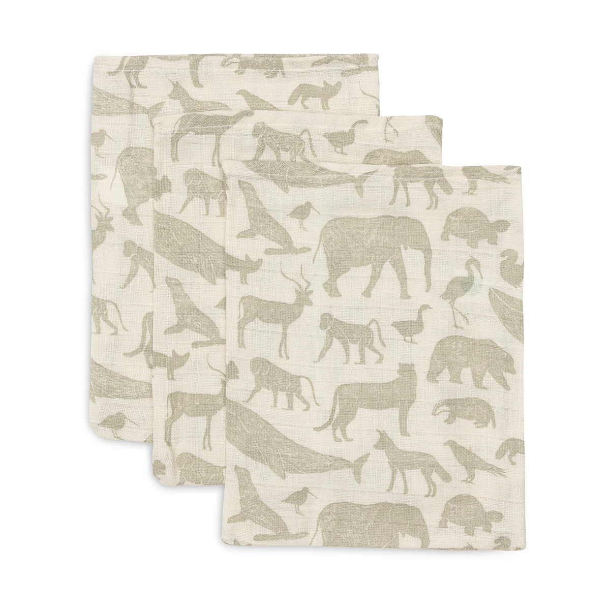 Hydrofiele washandjes Animals ~ olive green (3 stuks)