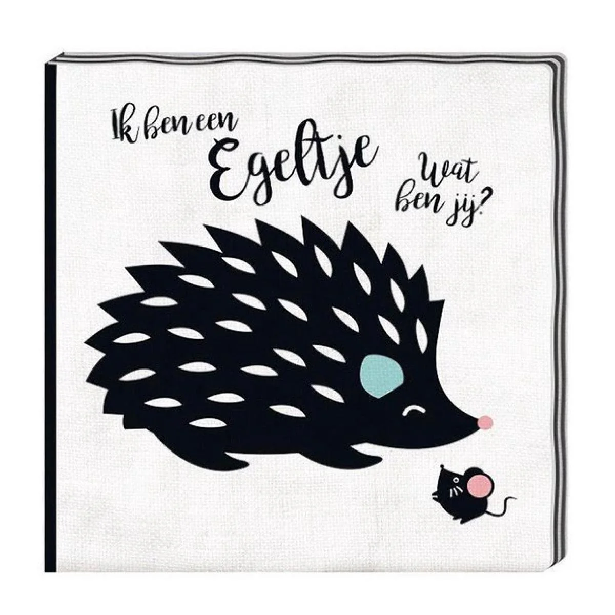 Zwart, wit knisperboekje van het merk Imagebooks met daarin verschillende dieren die zichzelf voorstellen.