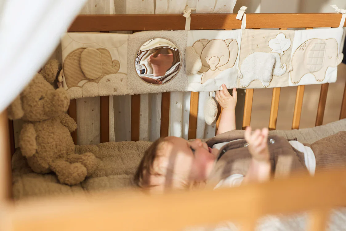 Deze Activiteiten Boxhanger is een schattig 5-delige slinger vol olifanten van Jollein. Het boekje bevat schattige olifantjes en een spiegeltje die je kleintje uren zullen vermaken. Het boekje maakt geluidjes en bevat knisperingen en touwtjes, waardoor de zintuigen van je baby gestimuleerd worden. Perfect voor in de box!