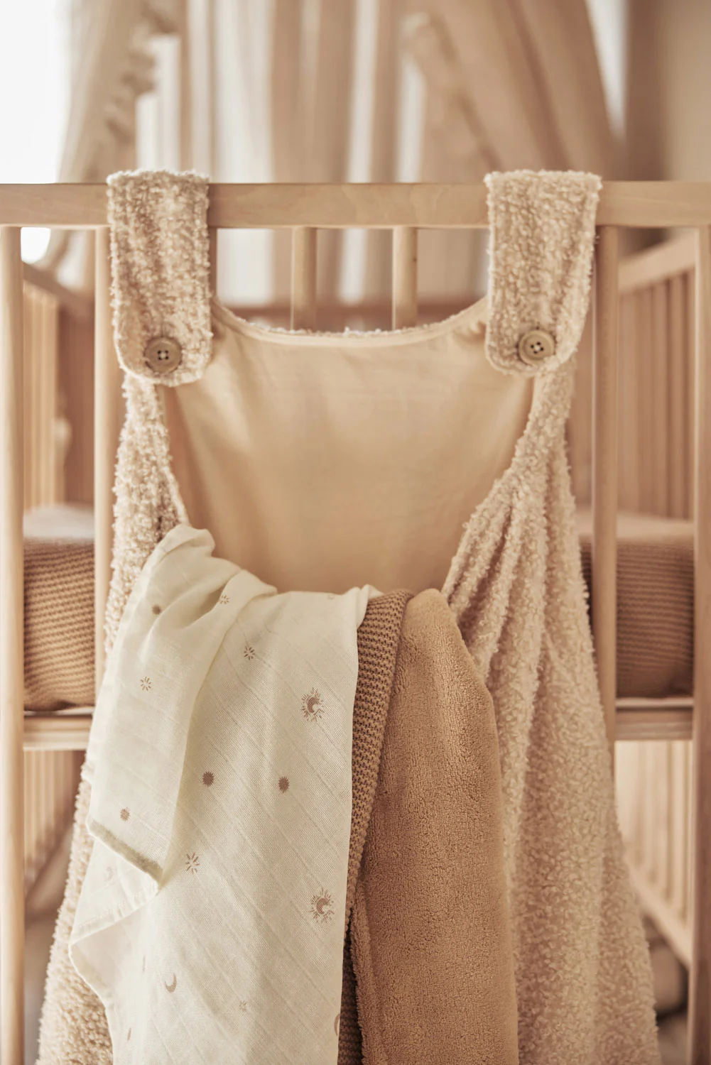 Jouw kleintje heeft op zo’n jonge leeftijd vast al heel wat speelgoed verzameld. Maar waar laat je al dat speelgoed? Deze mooie boxopbergzak, van boucle stof, is super handig om al het rondslingerende speelgoed in op te bergen. En dit ziet er ook nog eens leuk uit! De zachte opbergzak kan je bevestigen aan de box, maar kan ook in de babykamer opgehangen worden.