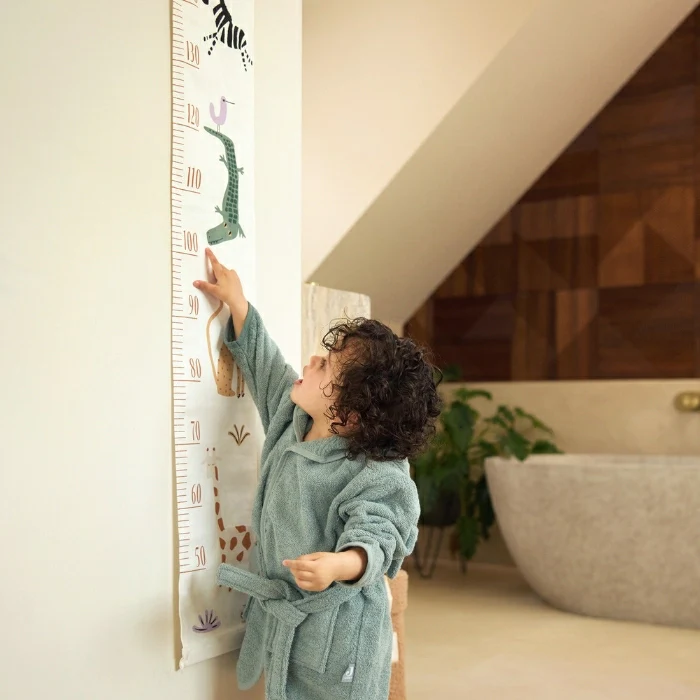 Kids groeien als kool, dat hoeven we je niet te vertellen. Ze vinden het geweldig om hun eigen groeispurten bij te houden. en de Jungle Jambo groeimeter helpt hierbij! In de kleur Oatmeal en versierd met verschillende jungle dieren kun je tot 140 cm meten hoe snel je kleintje groeit. Hang de groeimeter gemakkelijk op aan het lustje en haal gelijk het jungle thema naar de kinderkamer!