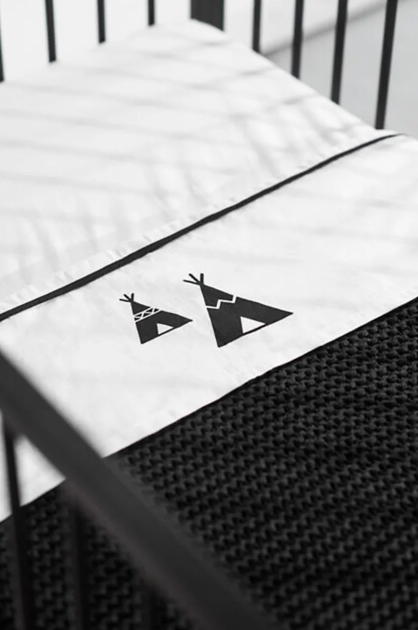 Leuk lakentje uit de Indians collectie speciaal voor alle kleine avonturiers in stoer zwart wit. Combineer met de andere items uit de Indians collectie of bijvoorbeeld met zwarte of grijze gebreide deken voor een heel stoer effect.