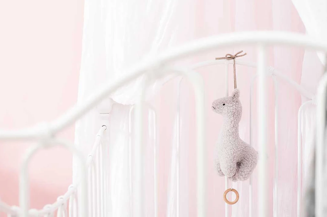 Een muziekje kan rustgevend werken voor een baby. Deze leuke muziekhanger met een lama heeft een houten ringetje aan het trekkoordje en touwtjes om de hanger aan op te hangen. De muziekhanger staat leuk in elke babykamer.