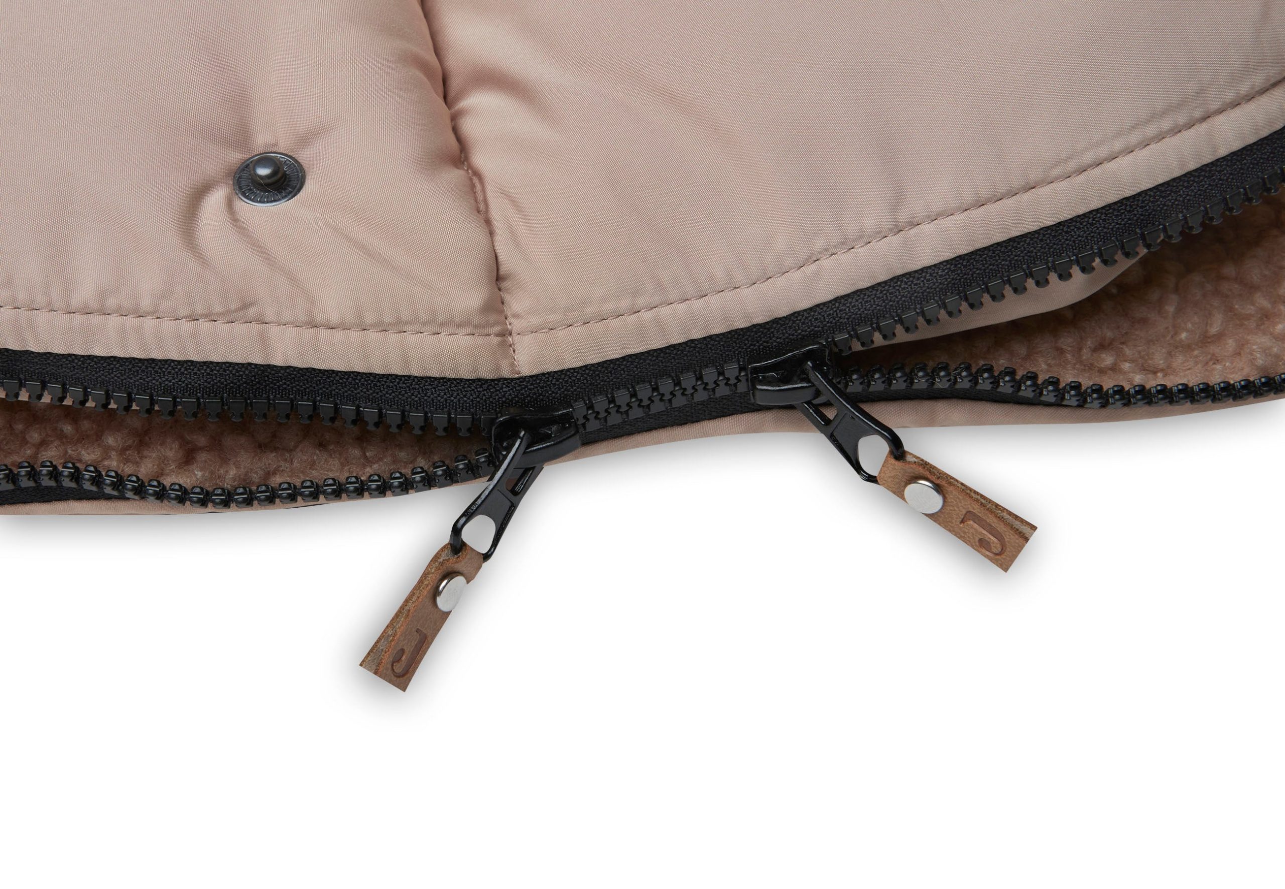 Deze voetenzak heeft openingen voor een 3 en 5 punts gordel, zodat de gordels van de buggy of wandelwagen er doorheen kunnen. Je kunt de voetenzak openen met een rits, welke beide kanten op te gebruiken is zodat je jouw kleintje gemakkelijk in en uit kan halen. Aan de achterkant van de voetenzak zit een handige kap zodat je deze om de hoofdsteun van de buggy kan vouwen. Op deze manier blijft de voetenzak goed zitten. De voetenzak is waterafstotend zodat je kindje lekker warm en droog zit!